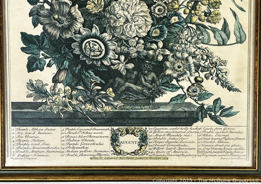 Lot #0266JK: Framed Under Glass Print Of August Flowers From Robert Furber's "Twelve Months Of Flowers" Series. 13.5 x 18"