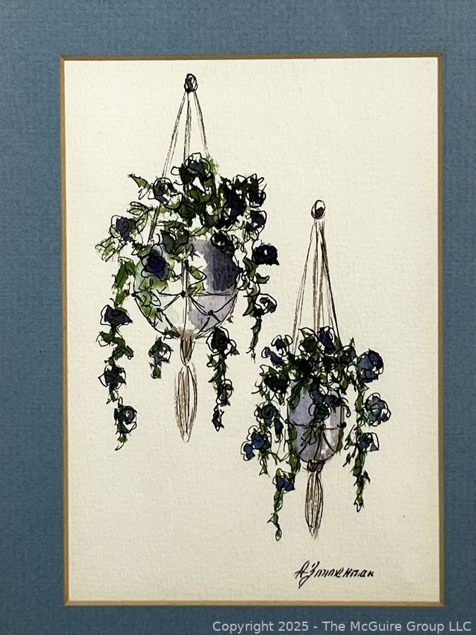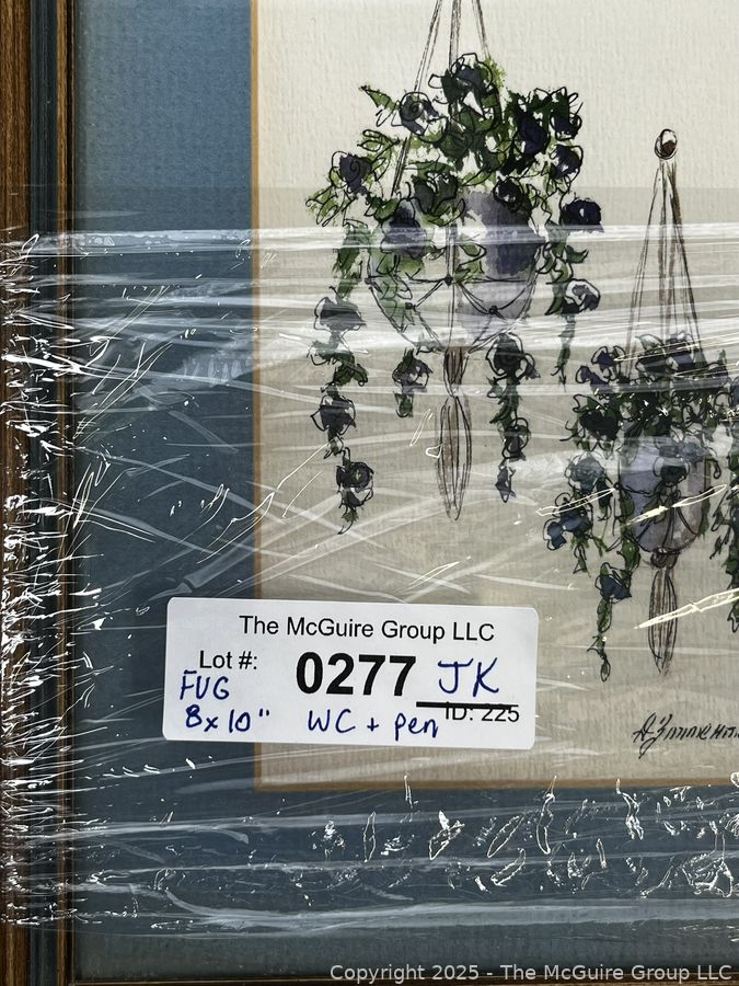 Lot #0277JK: Framed Under Glass Watercolor And Pen Of Ceropegia Woodii Plant. 8 x 10"