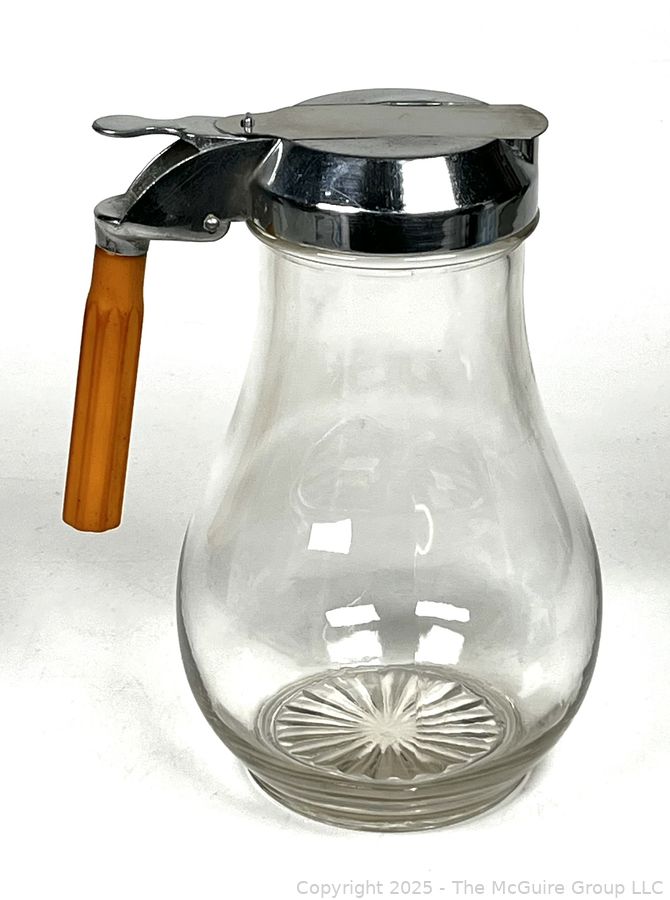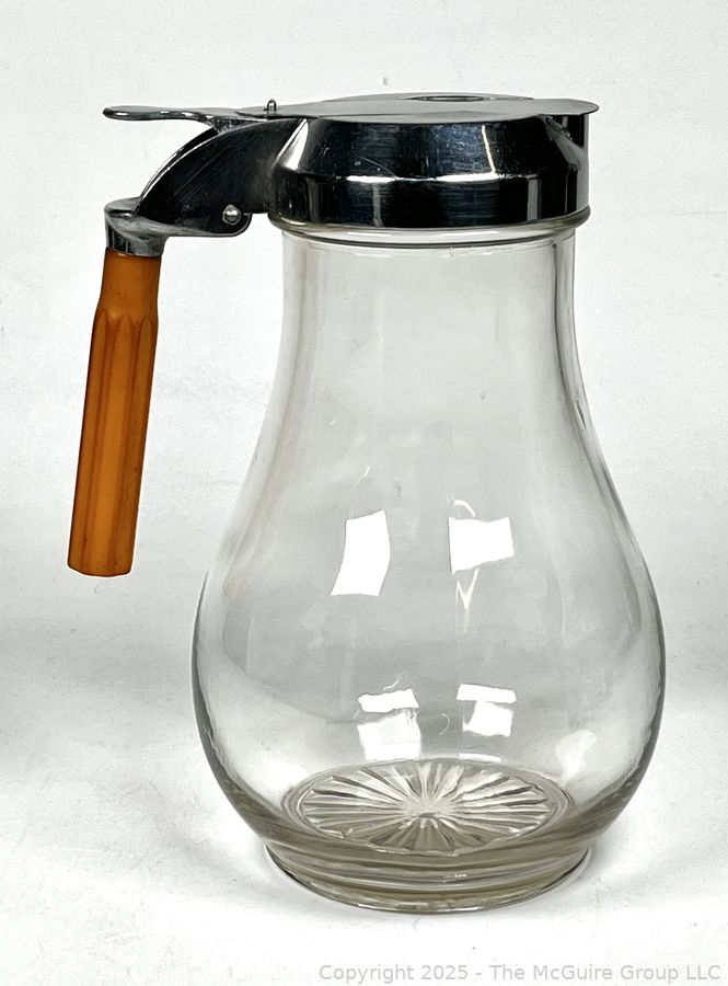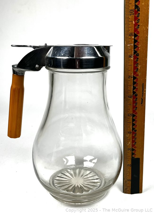 Lot #0274CP: Glass Syrup Pitcher with Butterscotch Bakelite Handle