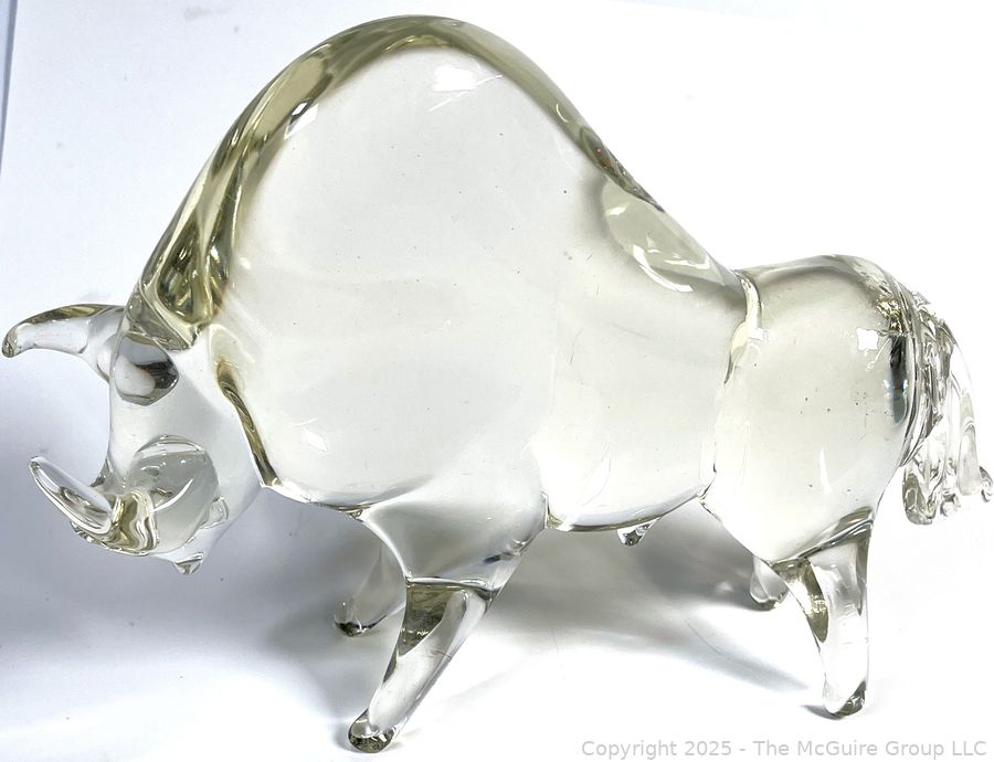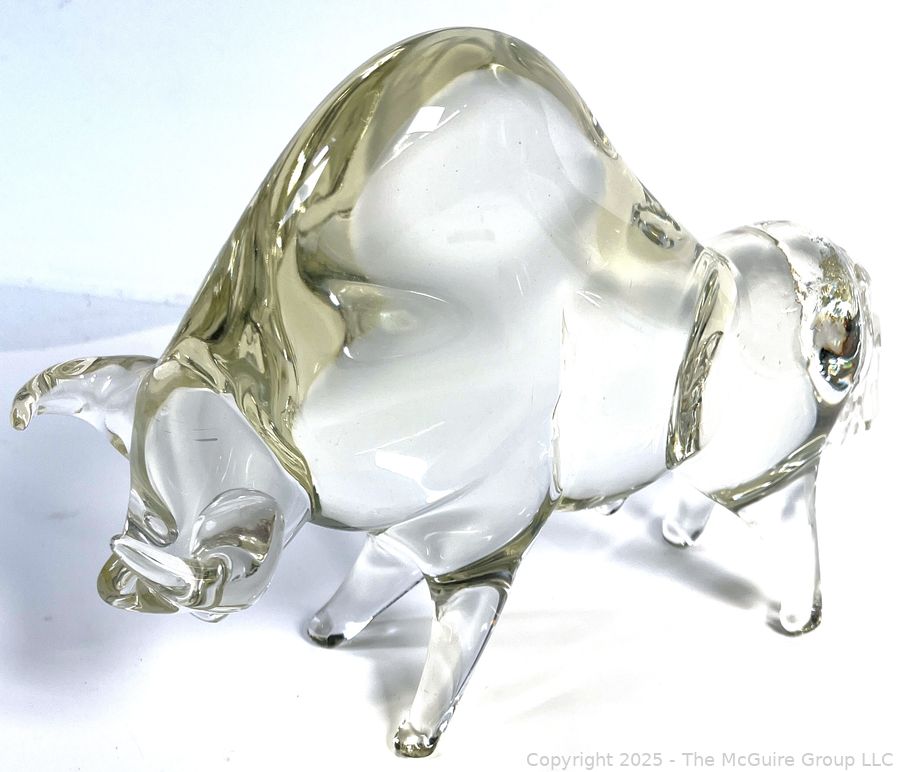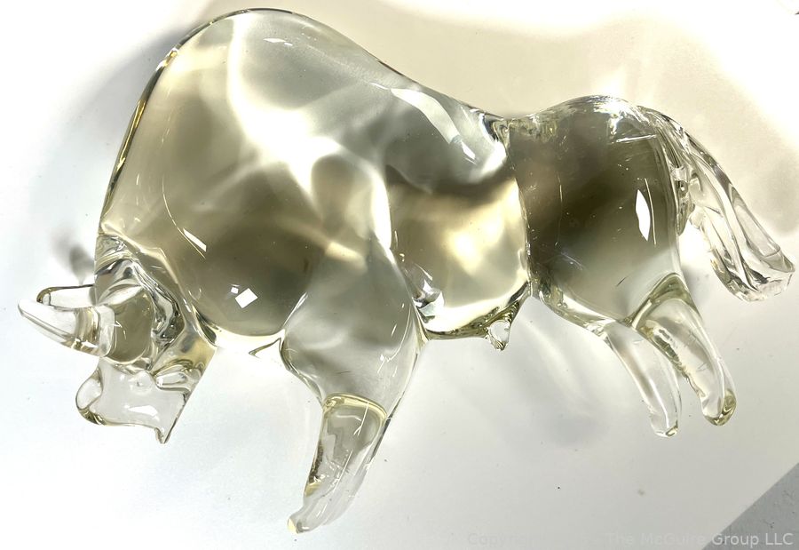 Lot #0084JK: Hand Blown Clear Glass Crystal Bull Figure.