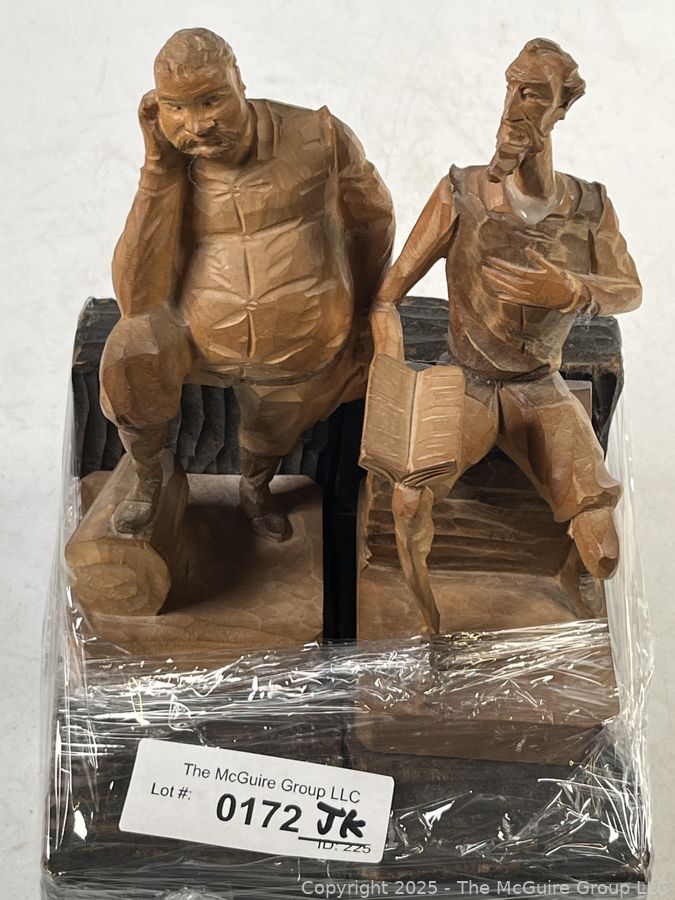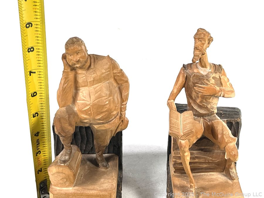 Lot #0172JK: Hand Carved Don Quixote Wooden Bookends