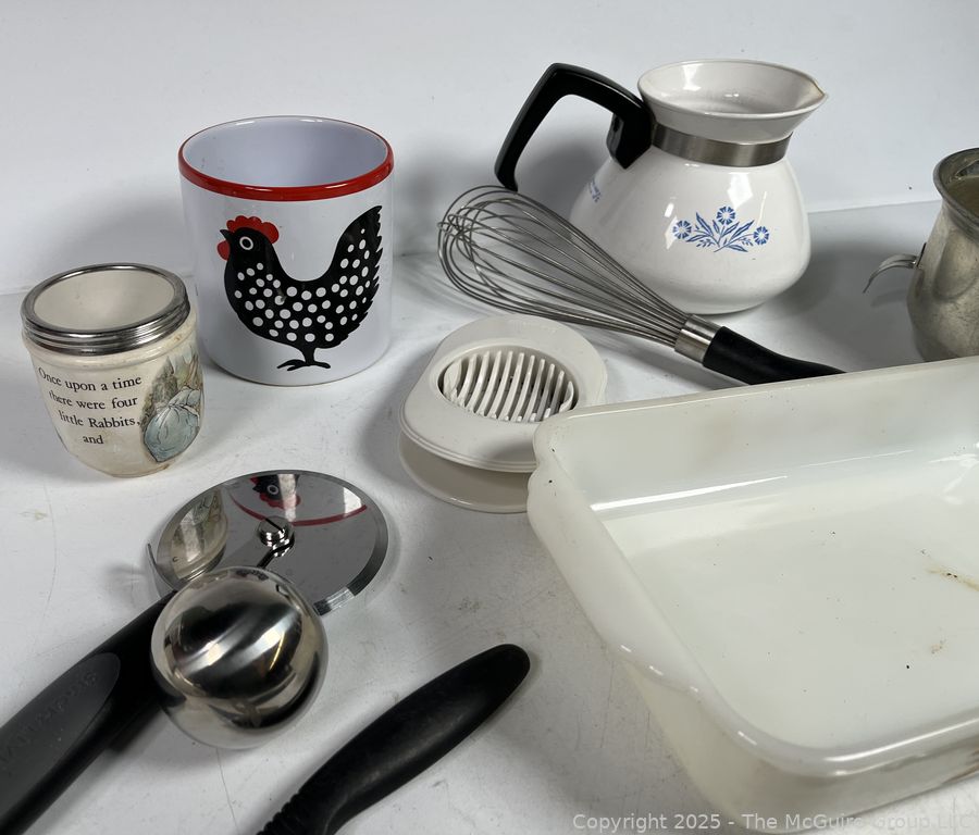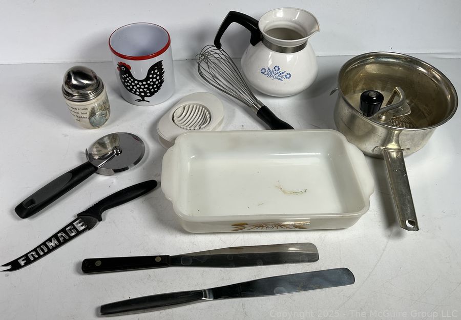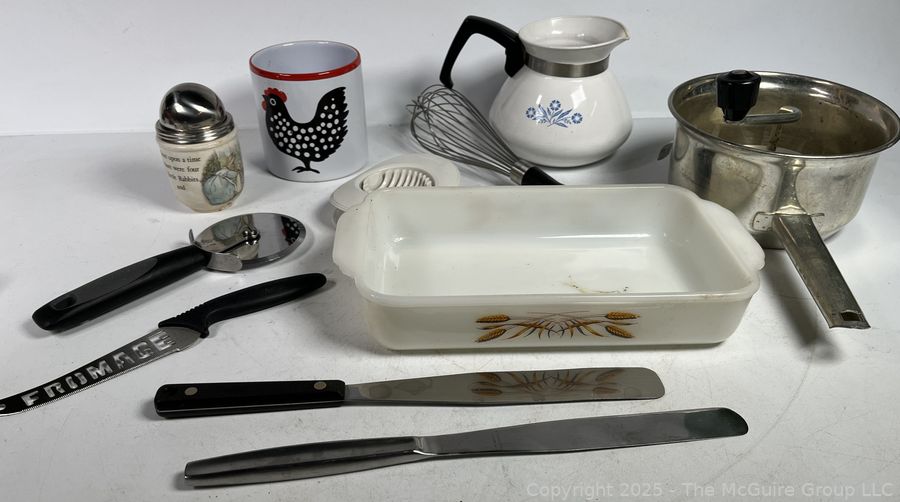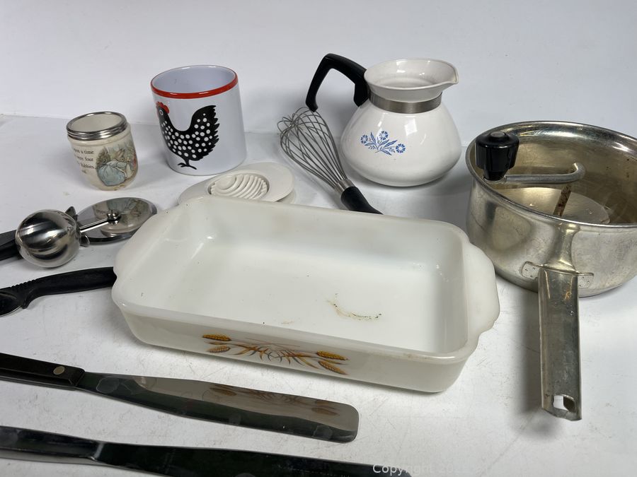 Lot #0270JK: Kitchenware Including Fire King Milk Glass Golden Wheat Casserole