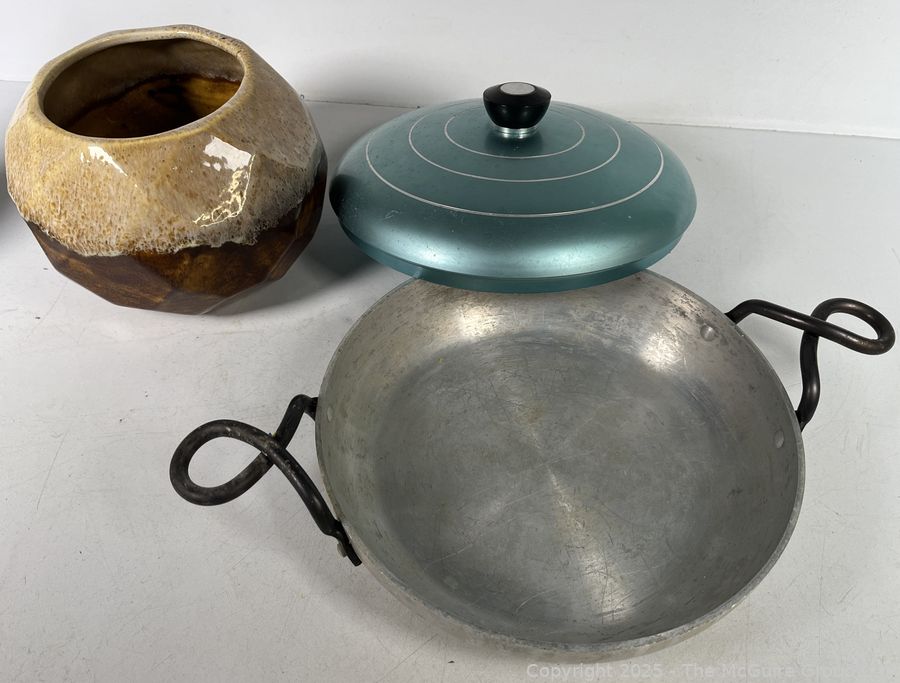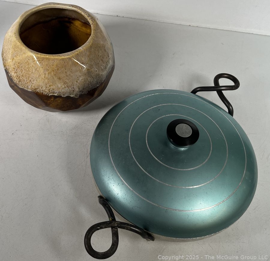 Lot #0159JK: Mid Century Pottery Planter and Wear-Ever Blue Covered Aluminum Casserole