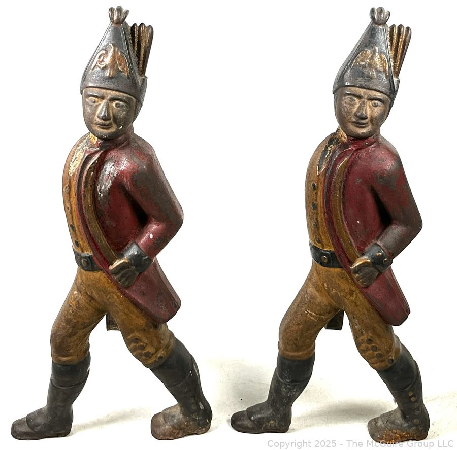 Lot #0086JK: Pair Of American Cast Iron Hessian Soldier Andirons