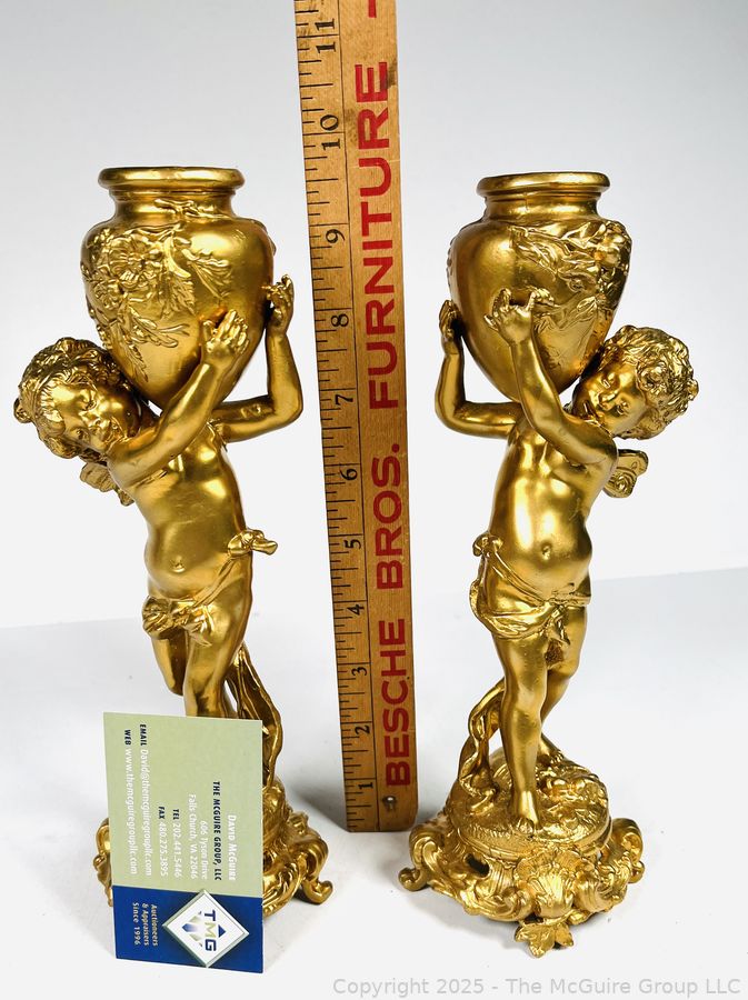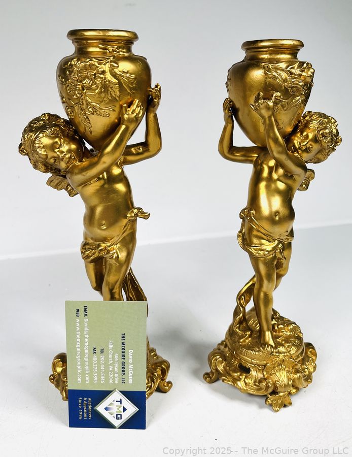 Lot #0353CP: Pair of Louis XV Style Ormolu Candelabra with Cherubs