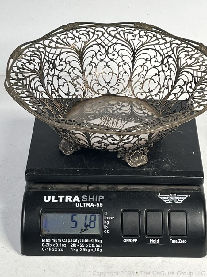 Lot #0001JK: Pierced Sterling Silver Fruit Bowl Basket. 518 grams