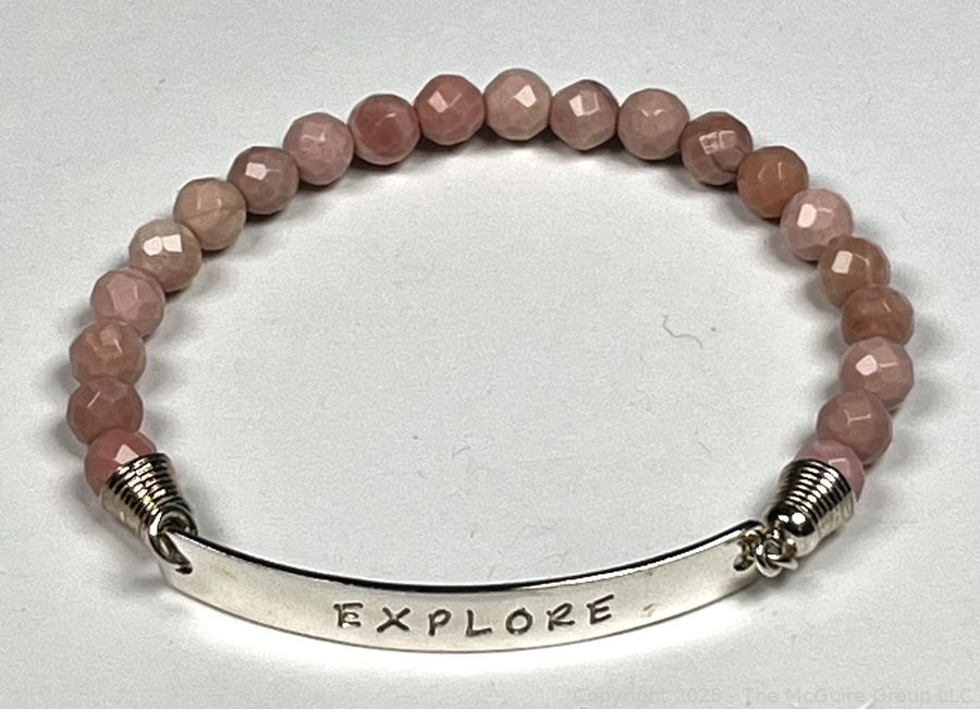 Lot #0435CMZ: Pink Stone Bead Bracelet with Sterling Silver Explore