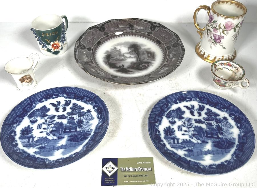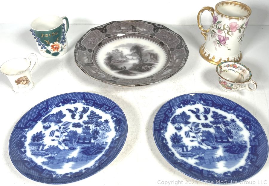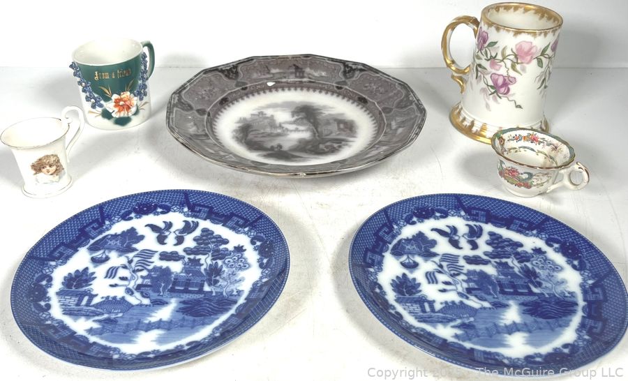 Lot #0240CP: Porcelainware Including Blue Willow and John Alcock Vincennes Black Transferware Plate