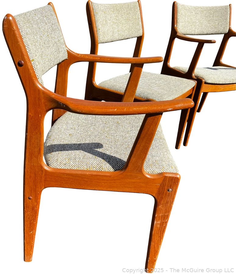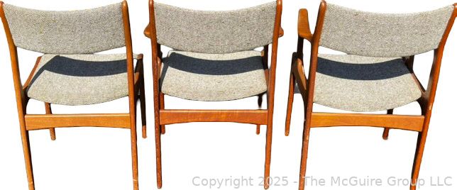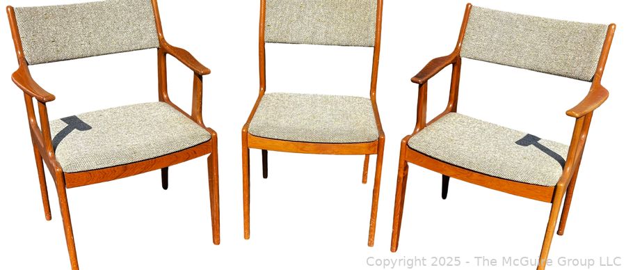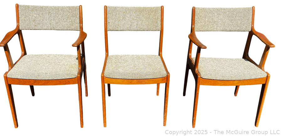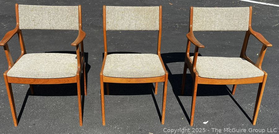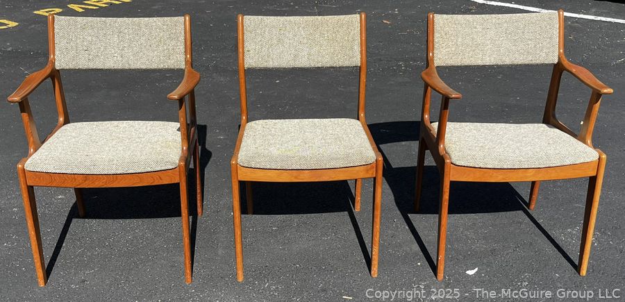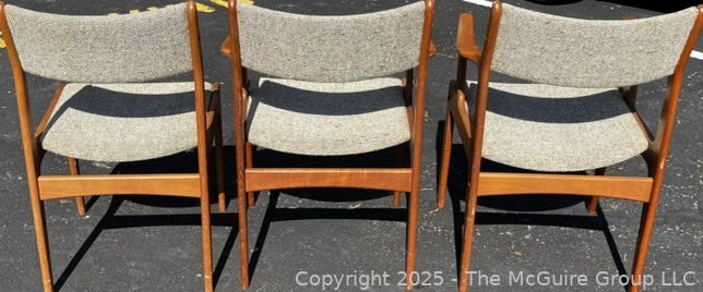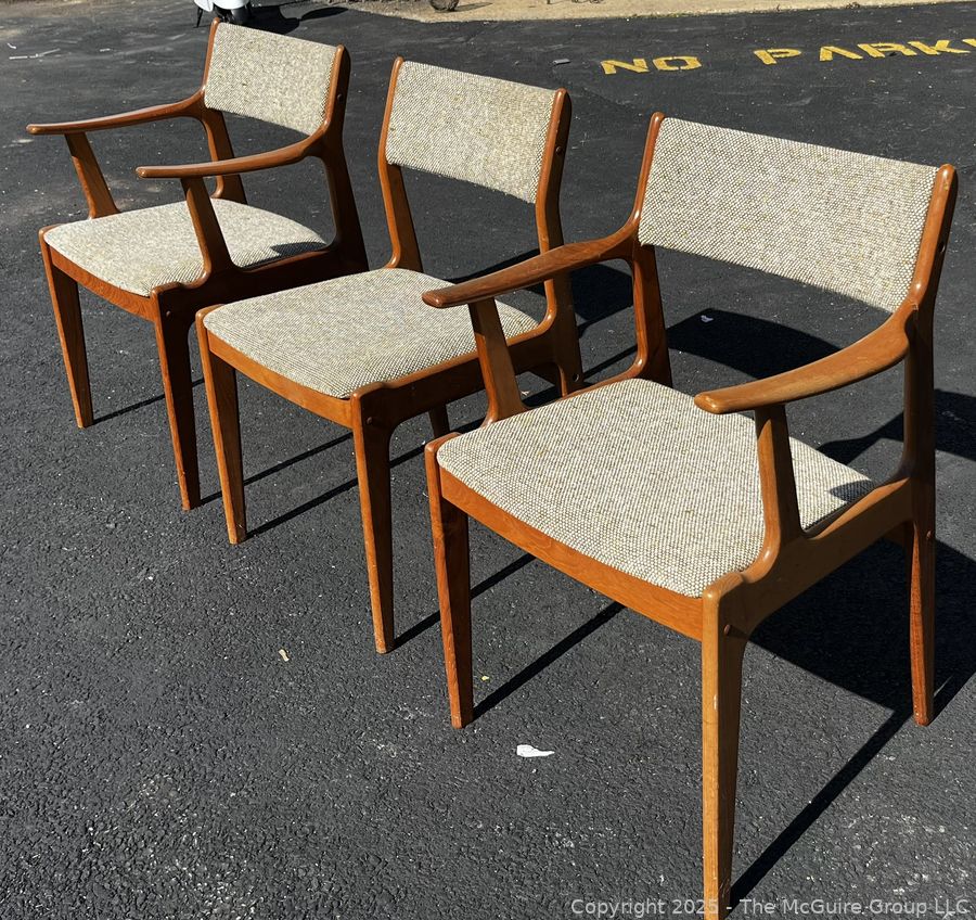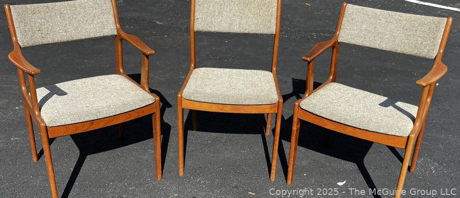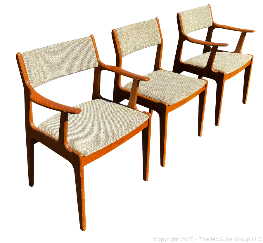 Lot #0062JK: Set of Three (3) Mid Century Danish Modern Teak Dining Chairs by Scandinavia Woodworks. One with Damage on Arm as Shown.
