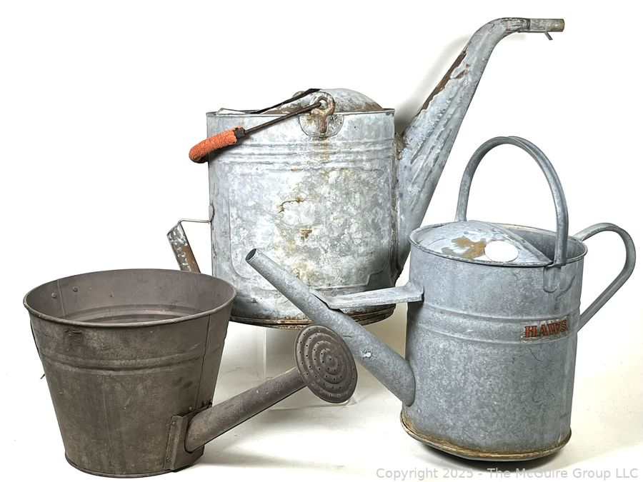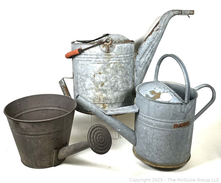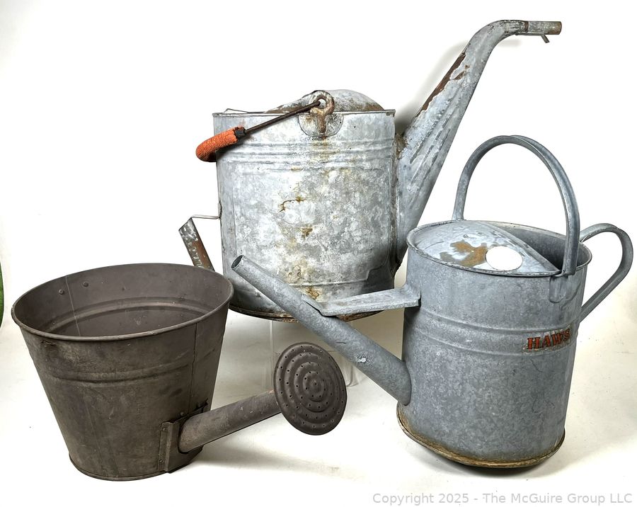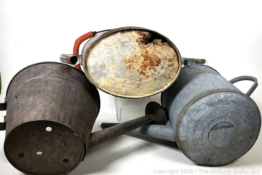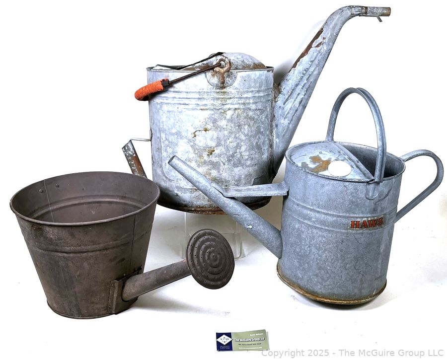 Lot #0291JK: Three (2) Metal Watering Cans, Some Holes in Base