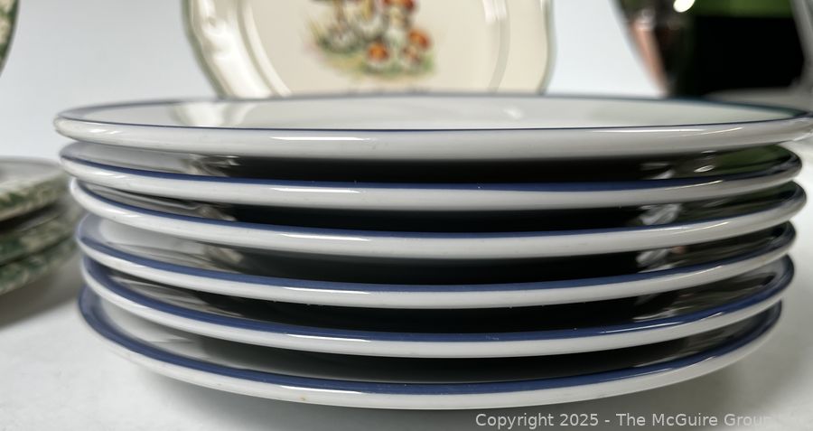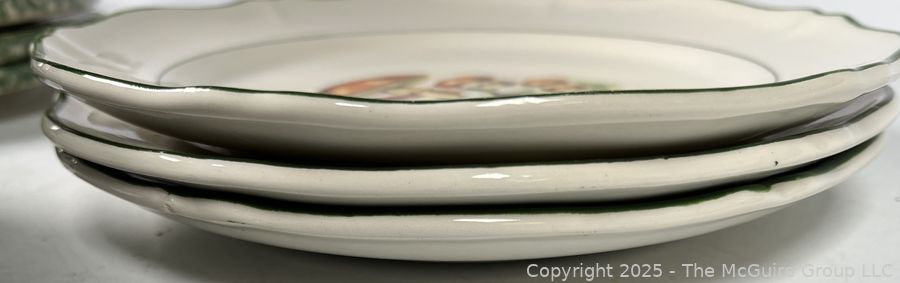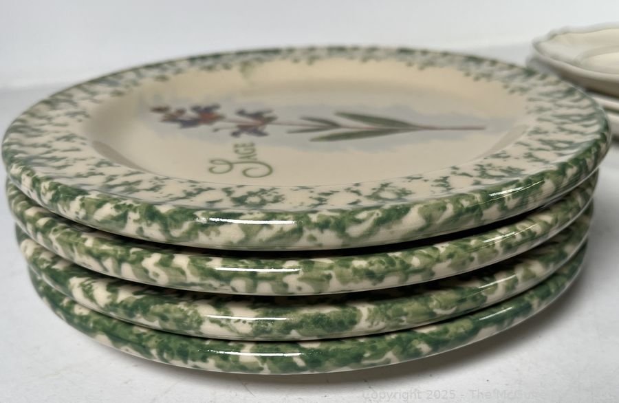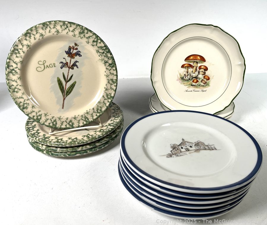 Lot #0162JK: Three (3) Sets of Porcelain Plates Including Williams Sonoma Les Fermiers and Roseville Spongeware
