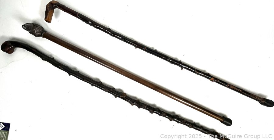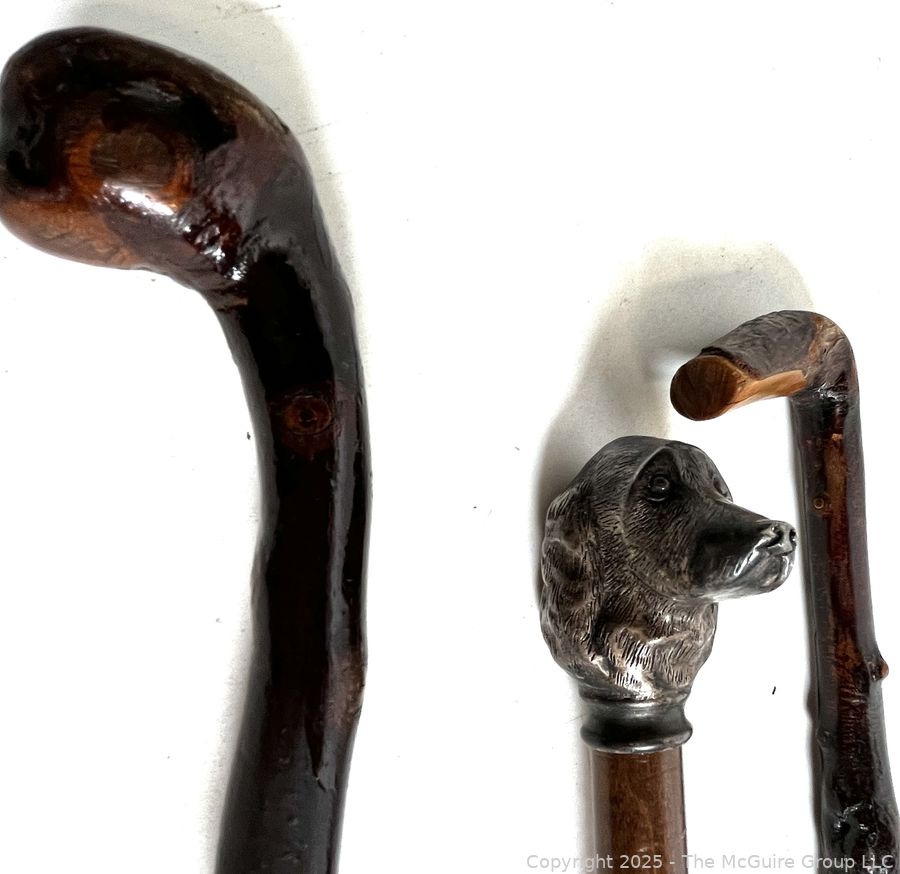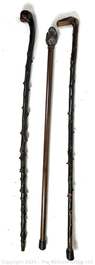 Lot #0315JK: Three (3) Walking Sticks Including Blackthorn Shillelaghs and Dog Head Handle Cane