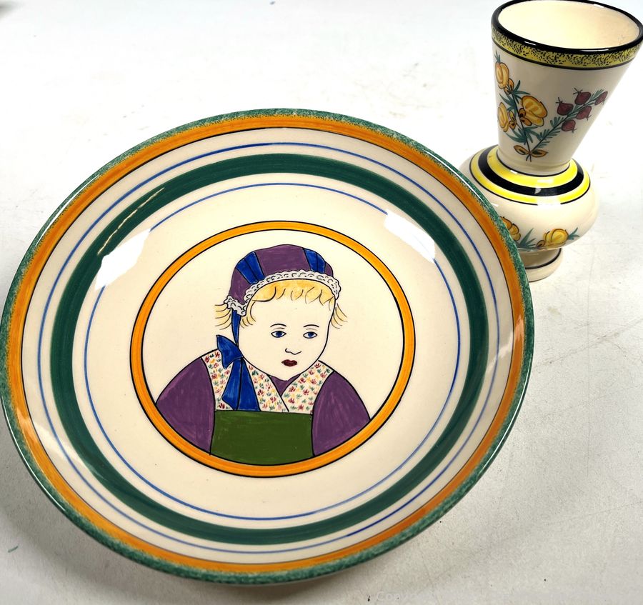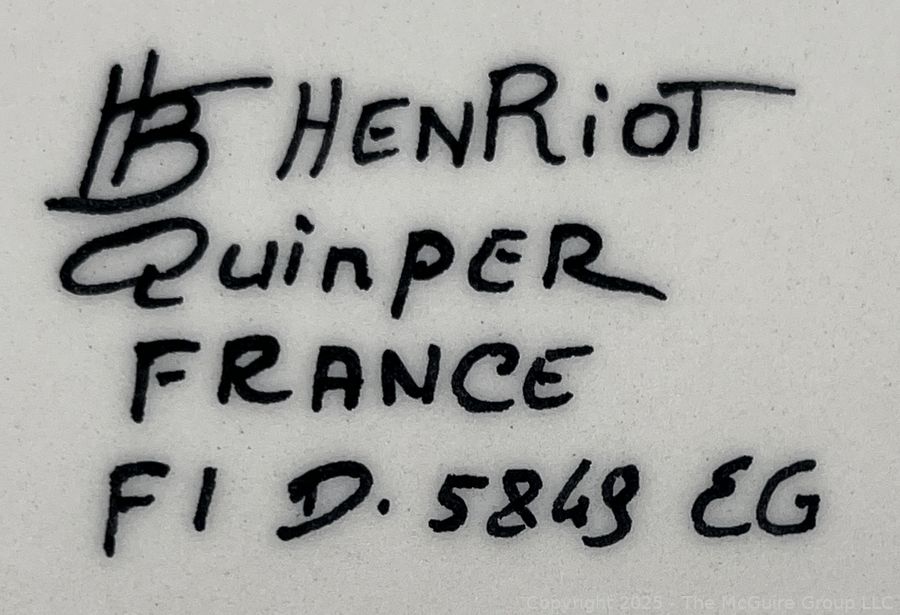 Lot #0186JK: Two (2) Pieces of French Breton Henriot Quimper Including Café au Lait Cider Bowl and Vase