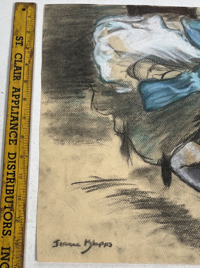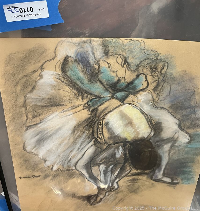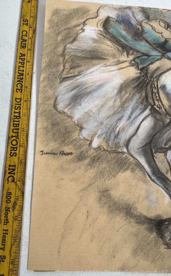 Lot #0110JK: Unframed Pastel On Paper Of Ballerina Signed by Artist Jeanne Klapps. 17 x 18"