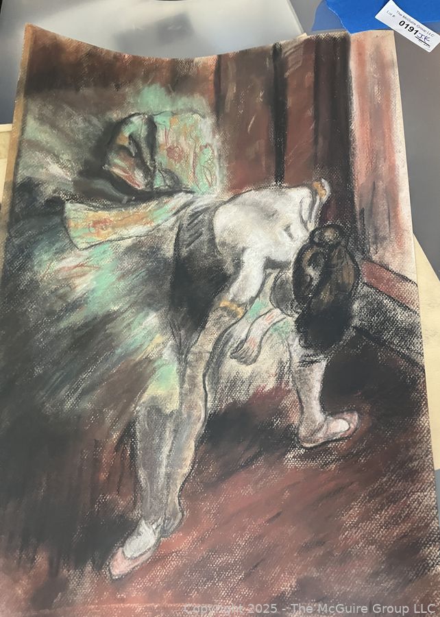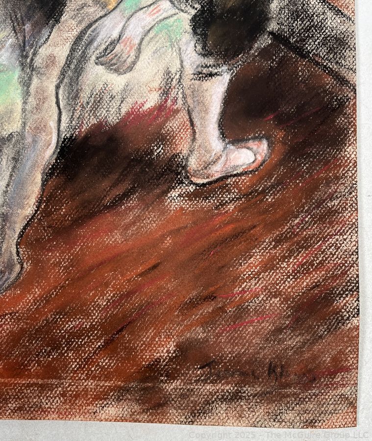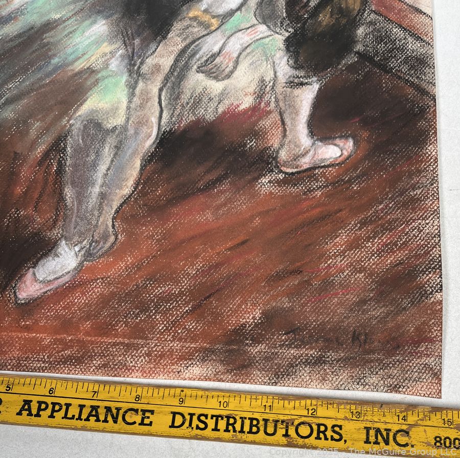 Lot #0191JK: Unframed Pastel on Paper of Ballet Dancer on Red Ground Signed By Artist Jeanne Klapps. 15 x 21.5"