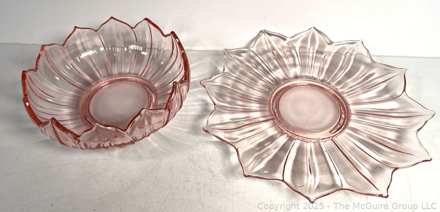 Lot #0069JK: Westmoreland Pink Glass Lotus Bowl and Plate