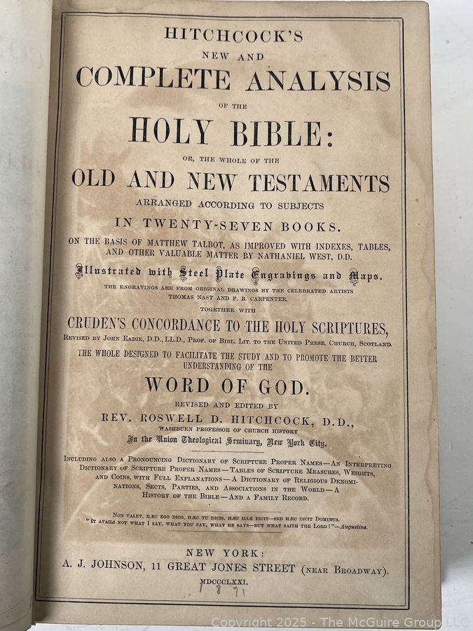 Request Shipping (david@themcguiregroupllc.com)Leather Bound 1871 Hitchcock's New and Complete Analysis of the Holy Bible