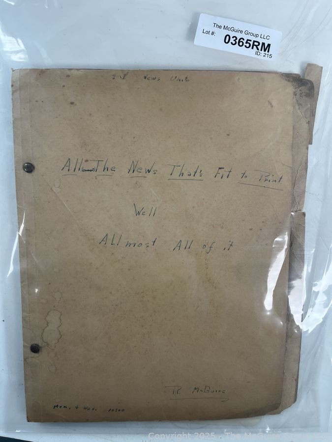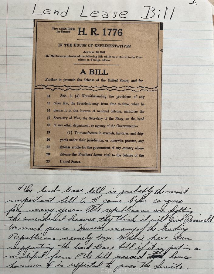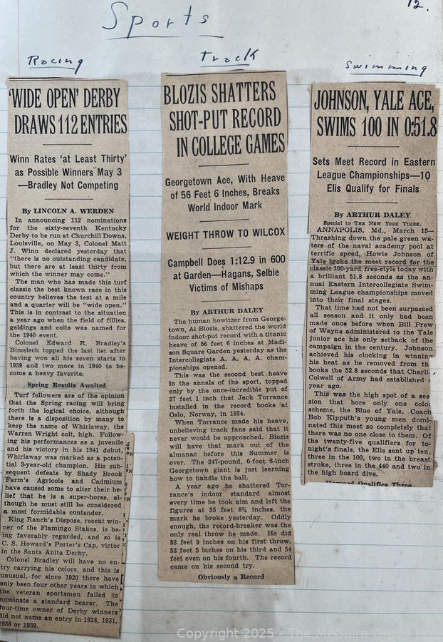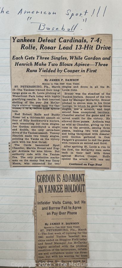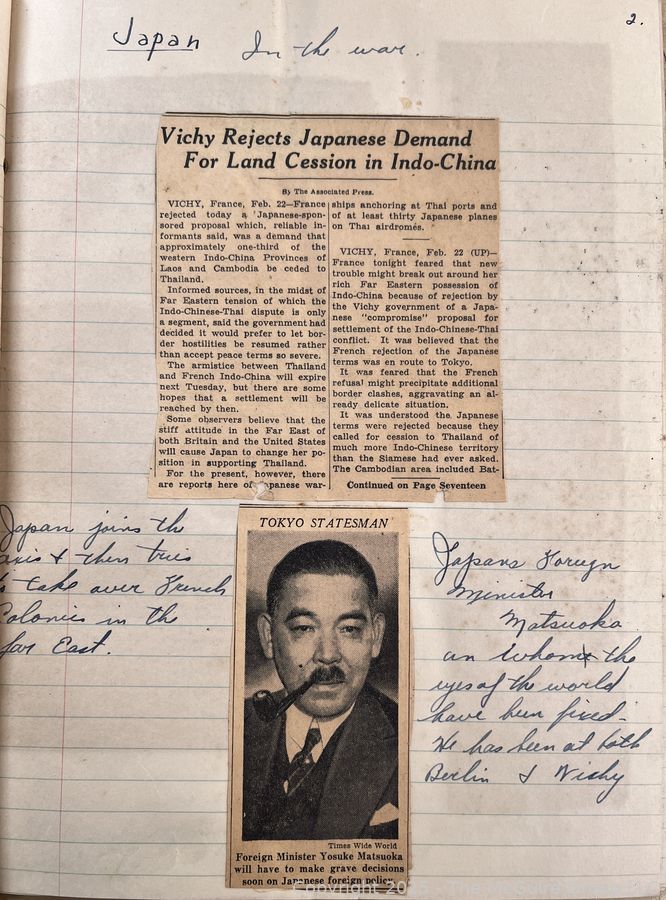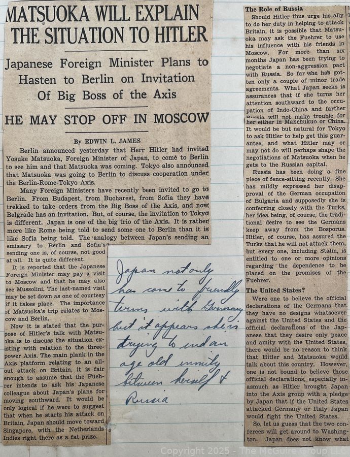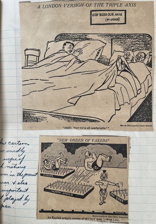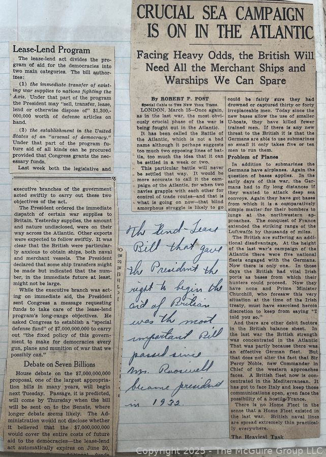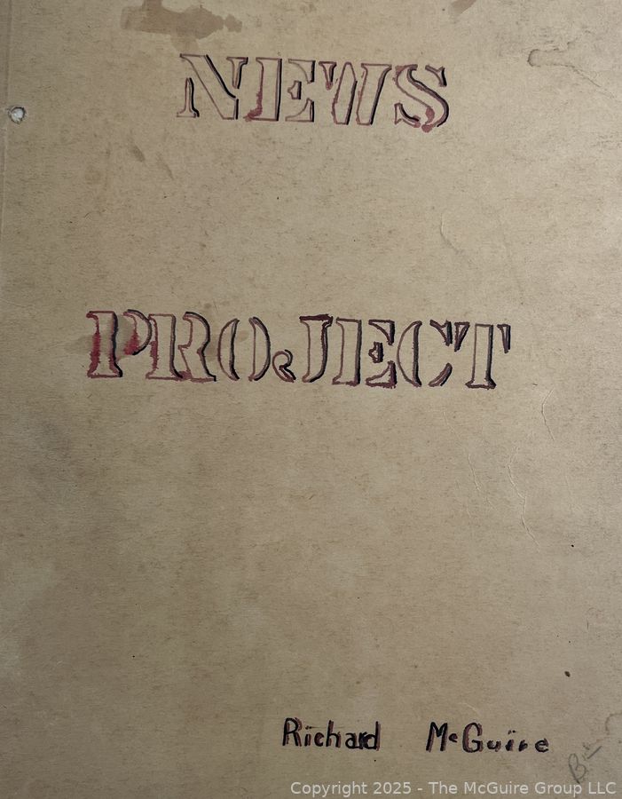 Lot #0365RM: 1940's Era News Clippings in School Class Scrapbook Format by Richard McGuire