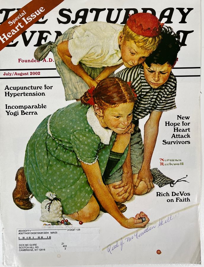 Lot #5199RM: 2000 Special Edition Saturday Evening Post of Girl Marble Champion by Norman Rockwell Signed by Ruth Skellie