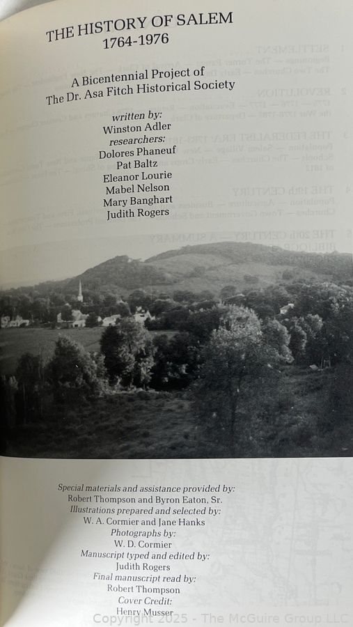 Lot #5842RM: Book: History of Salem 1764-1976 Published by the Asa Fitch Historical Society.
