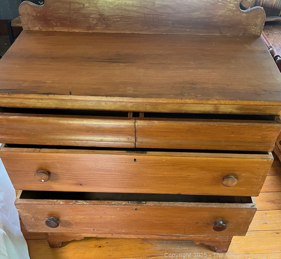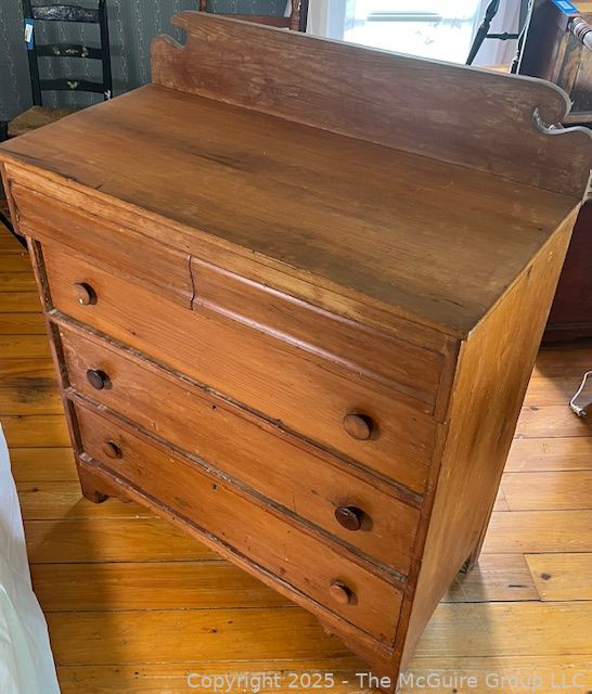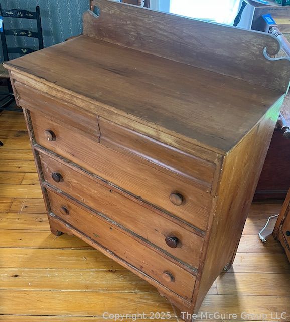 Lot #0025RM: Five (5) Drawer Dresser with Scroll Cut Back Plate. Measures 38W x 18D x 47"T