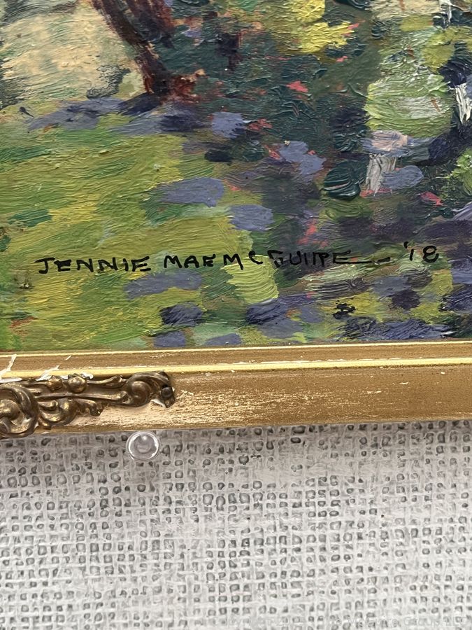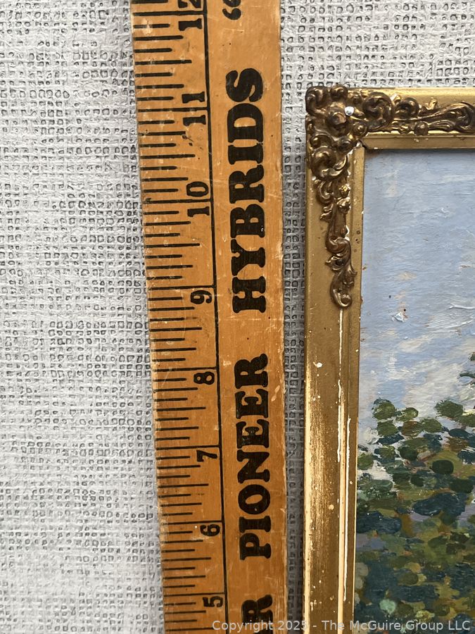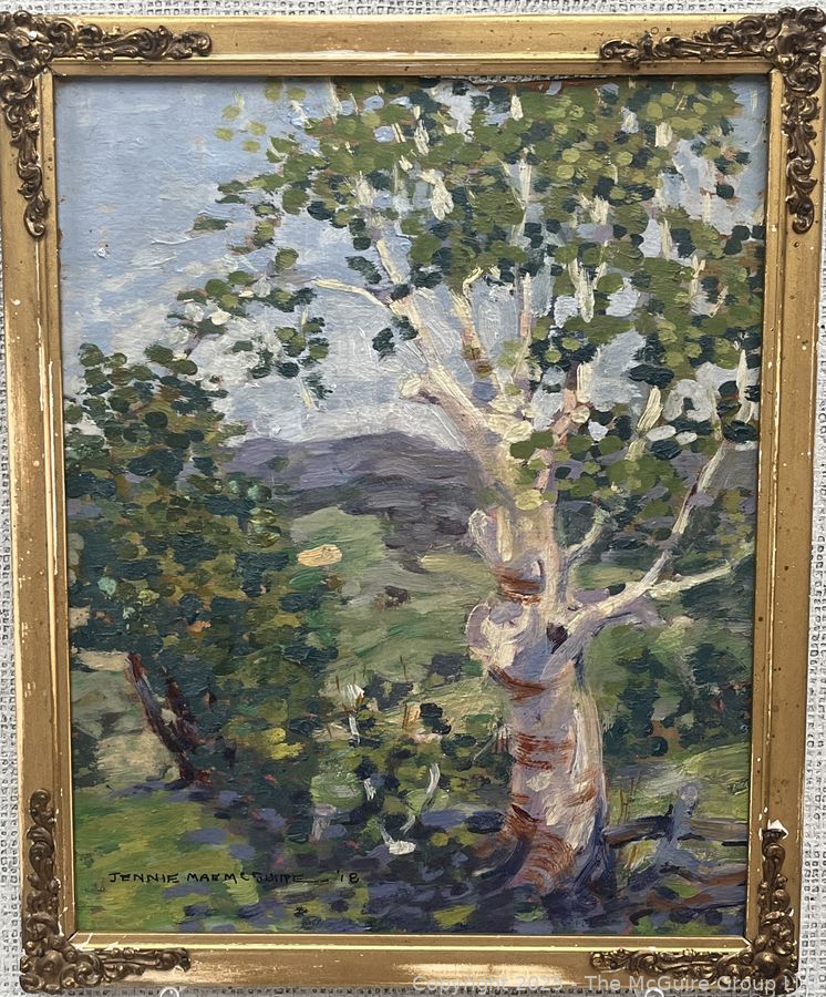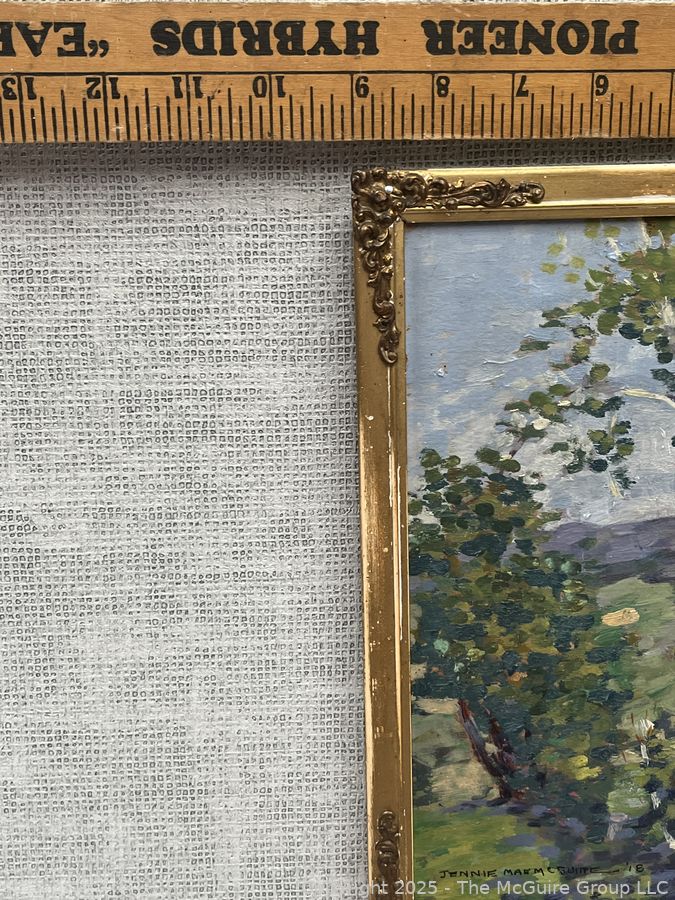 Lot #0712RM: Framed Oil on Artists Board of Upper Hudson Valley Landscape Signed Jennie Mae McGuire. Circa 1910