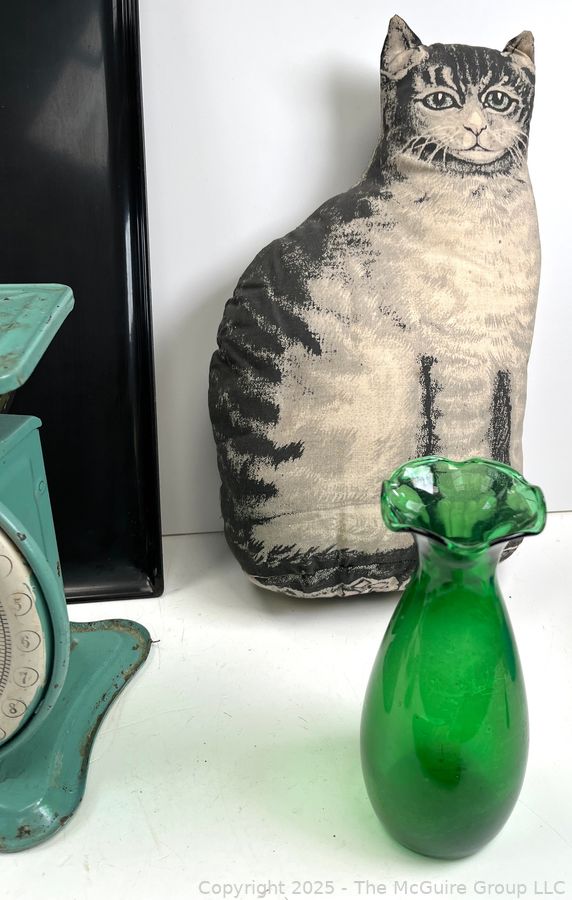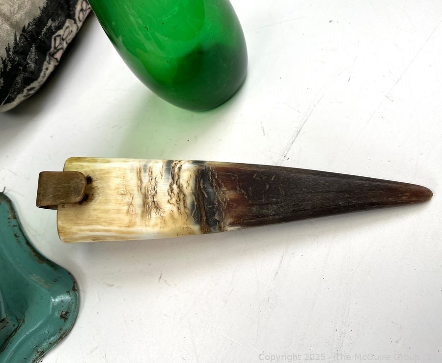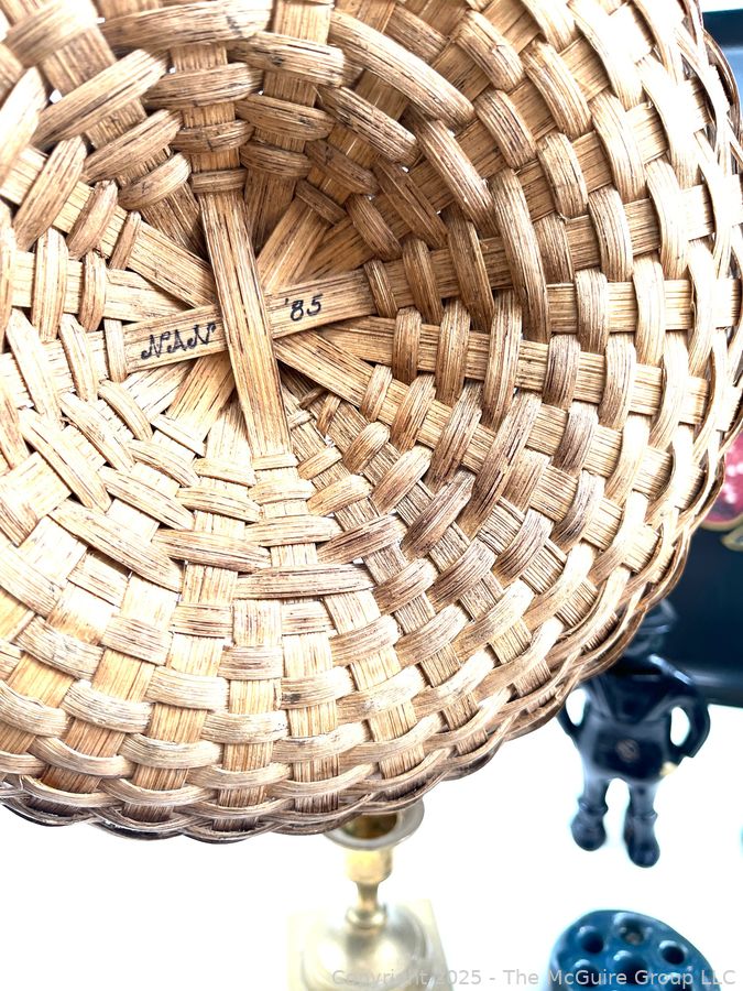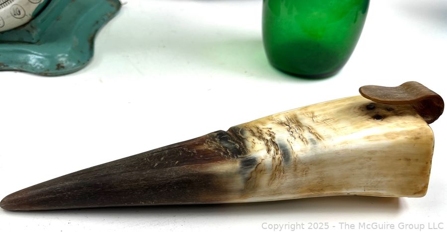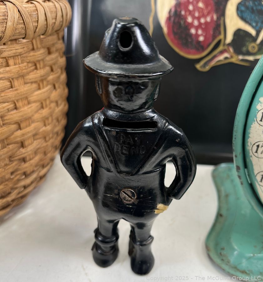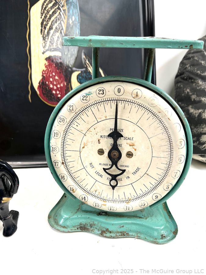 Lot #0916RM: Gathering Basket, Serving Tray, Flower Frogs, Family Scale, Bone Awl Etc