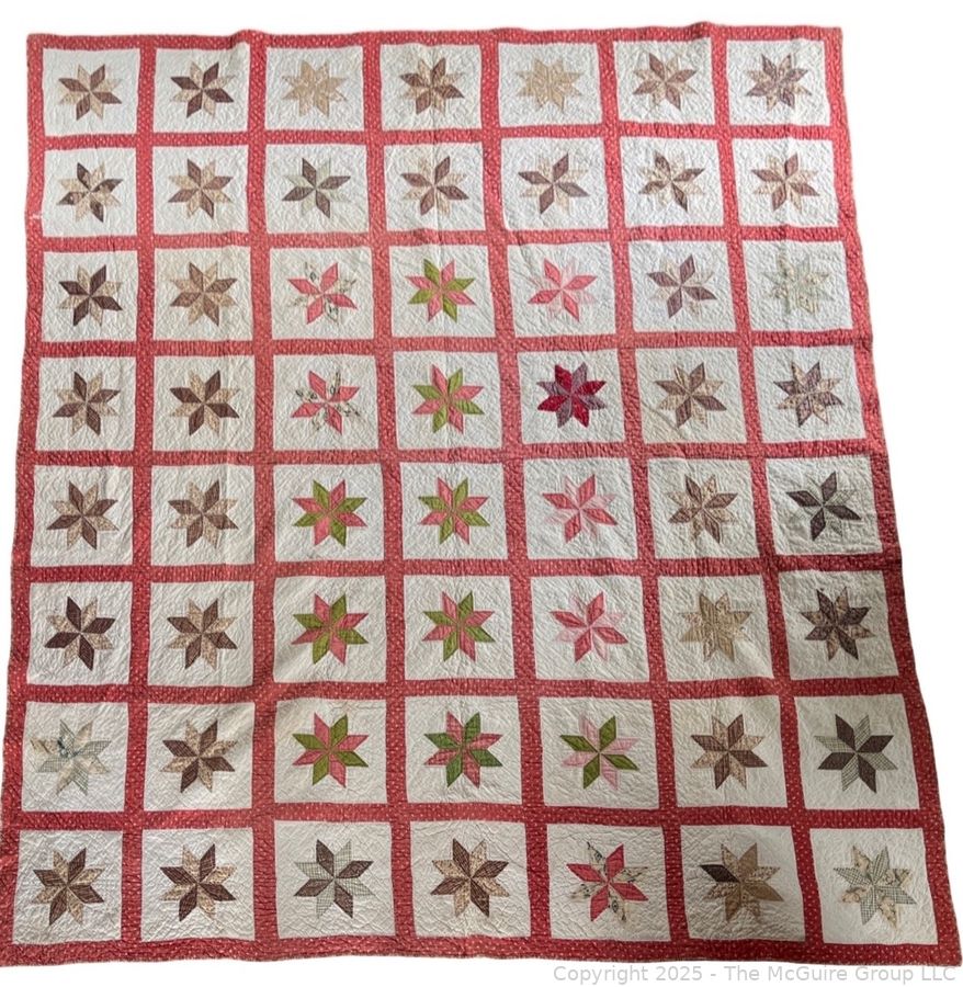 Lot #5016RM: Hand Stitched Quilt. Marked 1854 and 1878. Measures 77 x 84"