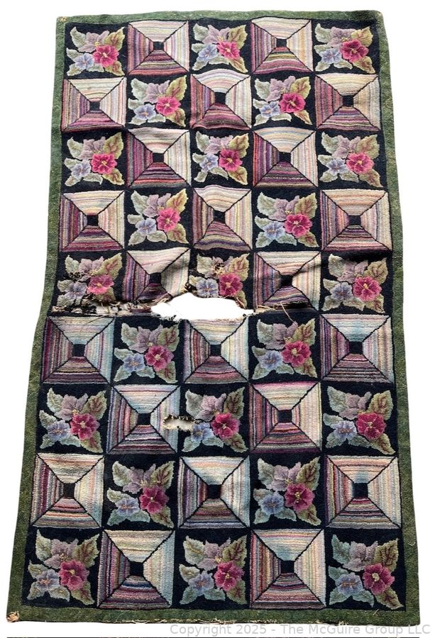 Lot #5010RM: Hooked Rug. Damaged. Measures 31 x 54"