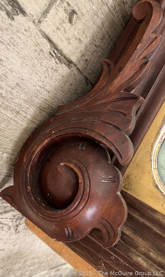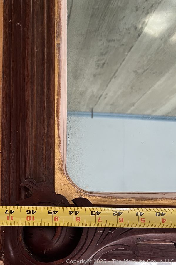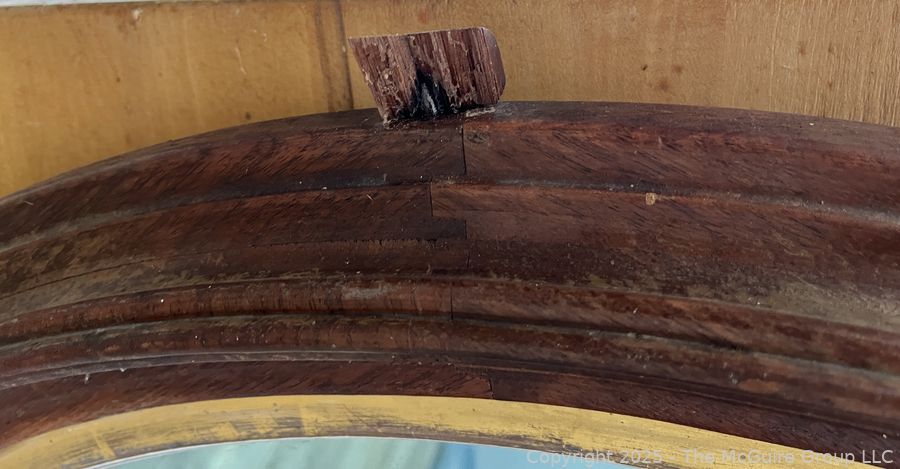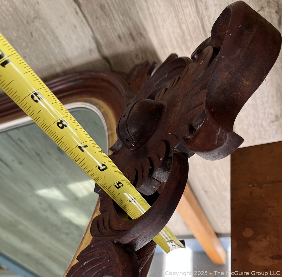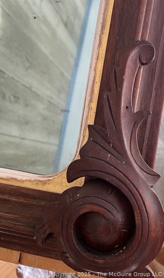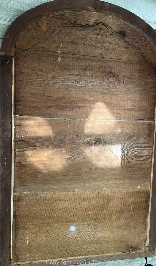 Lot #0350RM: Mahogany Wall Mount Mirror with Pediment Top. Measures 27 x 48"