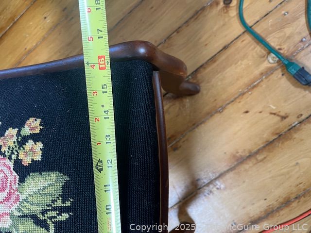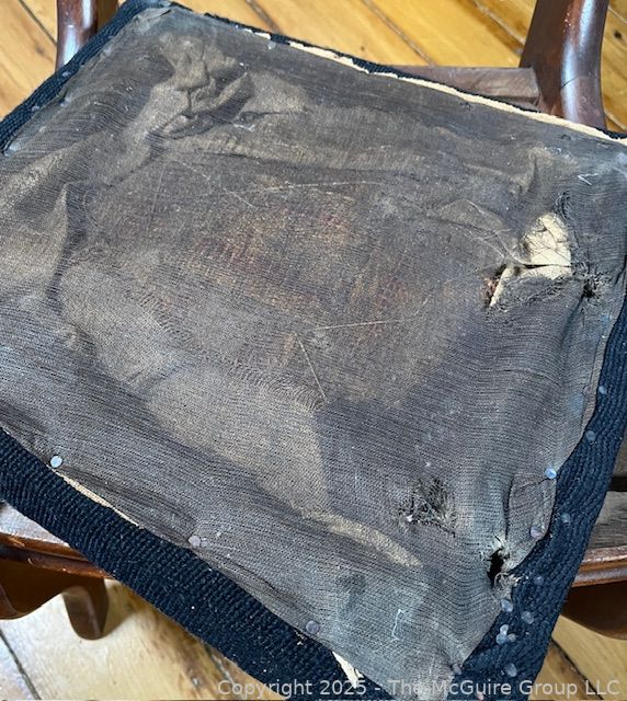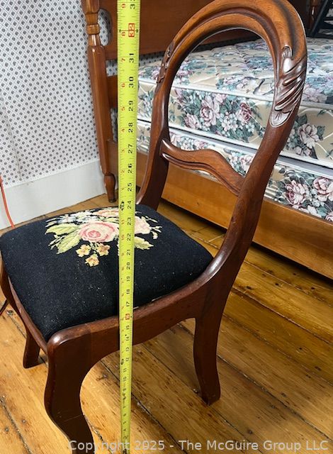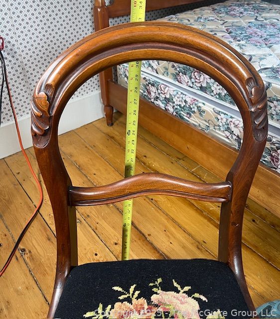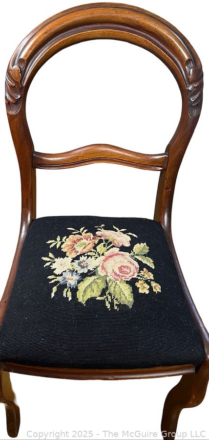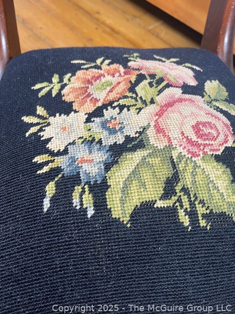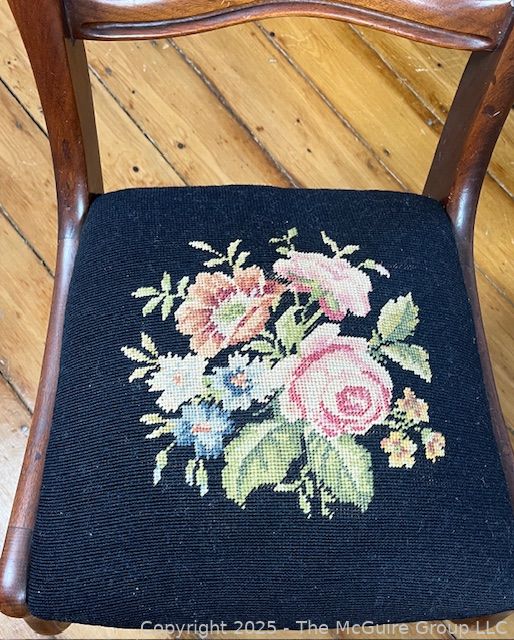 Lot #0006RM: Needlepoint Seated Braced Balloon Back Side Chair