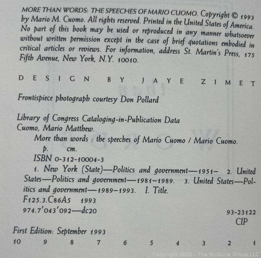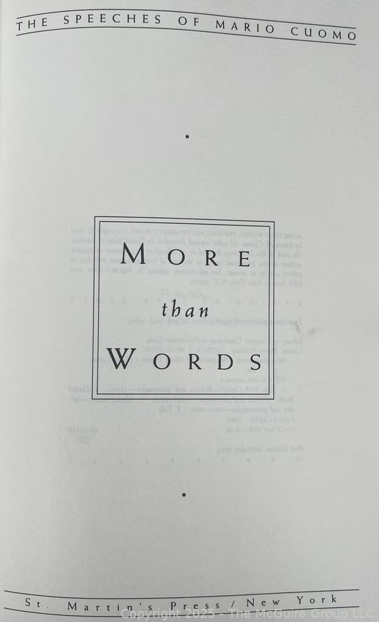 HB Book Titled More Than Words: The Speeches of Mario Cuomo - Inscribed and Signed by Author Family