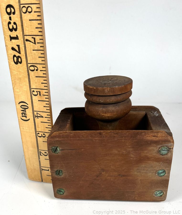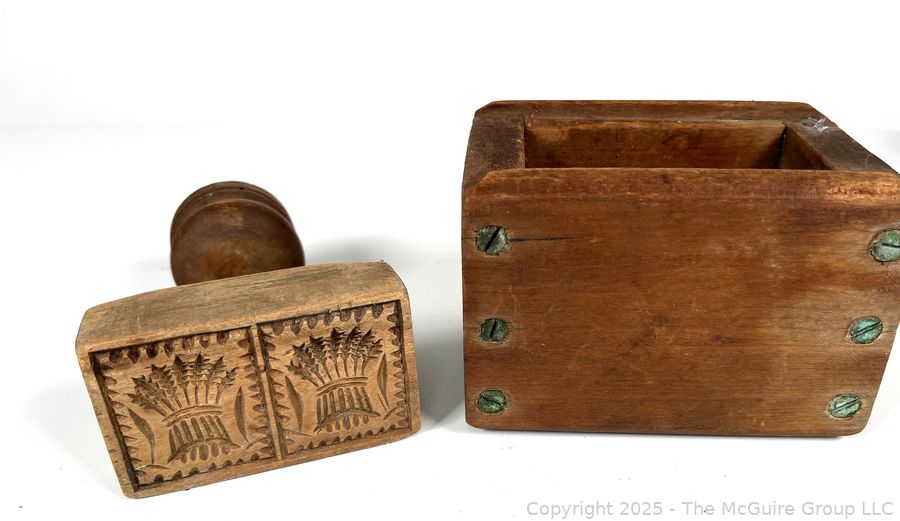 Lot #5207RM: Primitive Carved Double Wheat Butter Mold Stamp and Box
