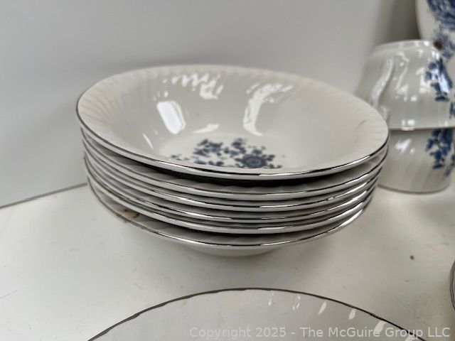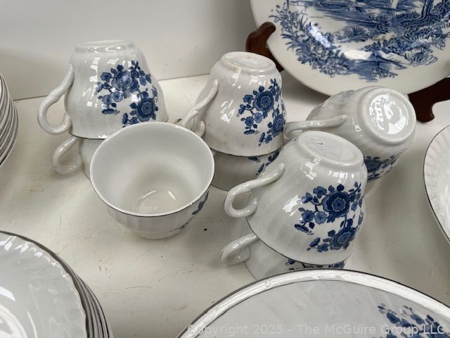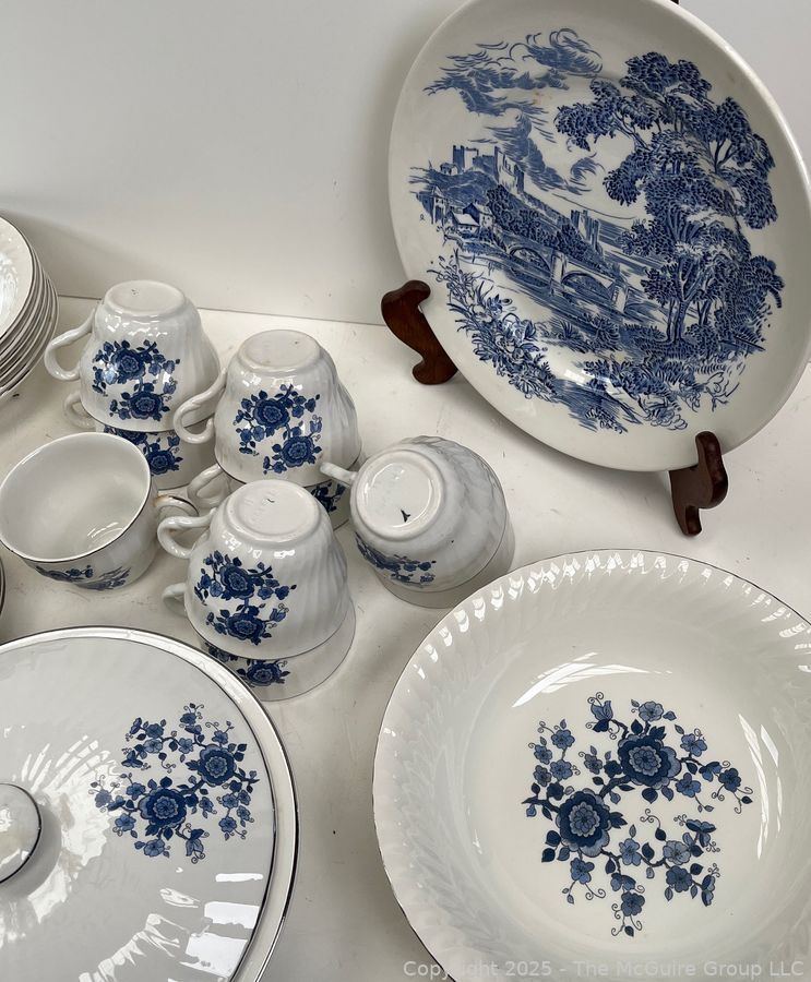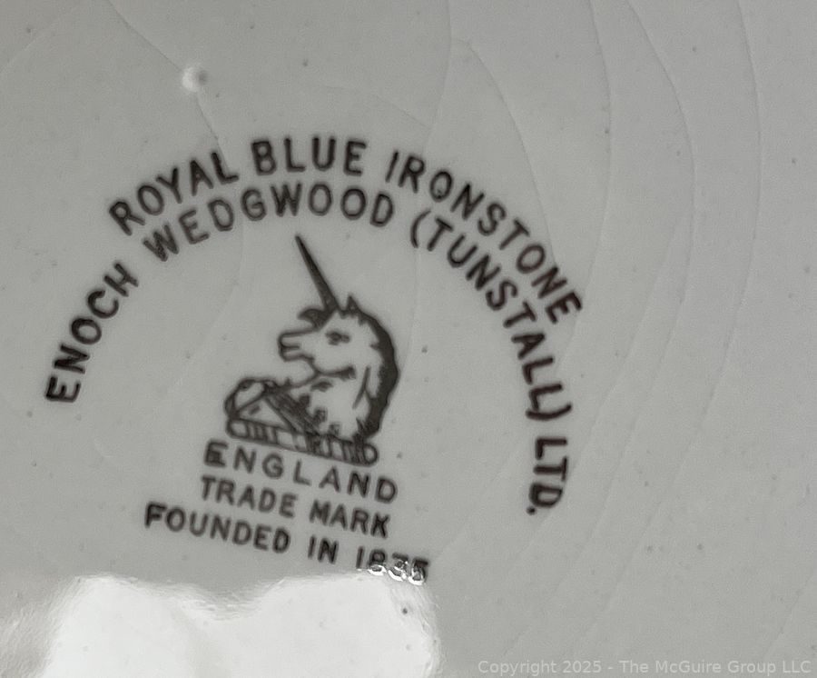 Lot #0834RM: Set of Blue and White Enoch Wedgwood Tunstall Royal Ironstone Dinnerware and Transferware Plate