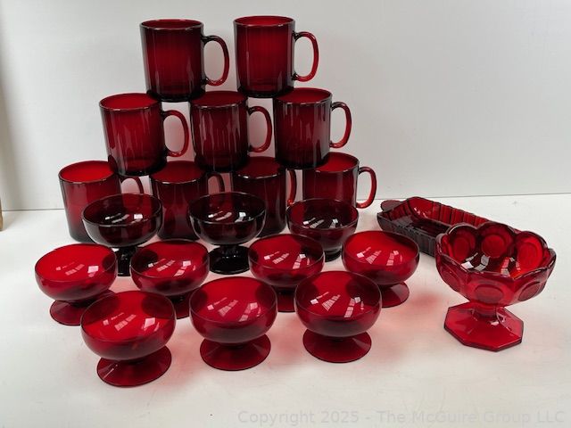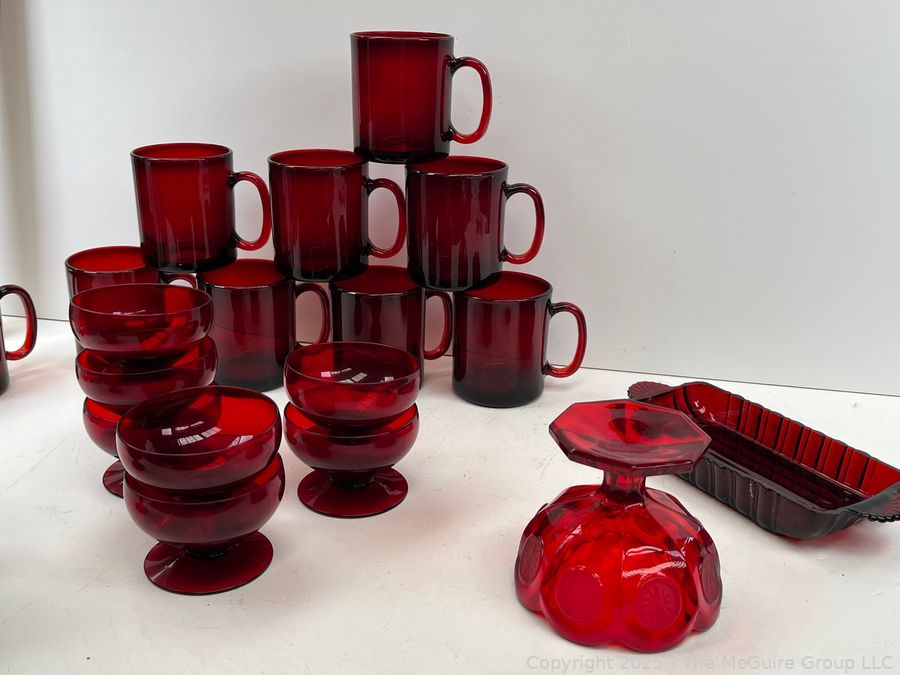 Lot #0816RMA: Set of Ruby Red Glassware. Made in France