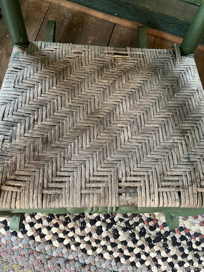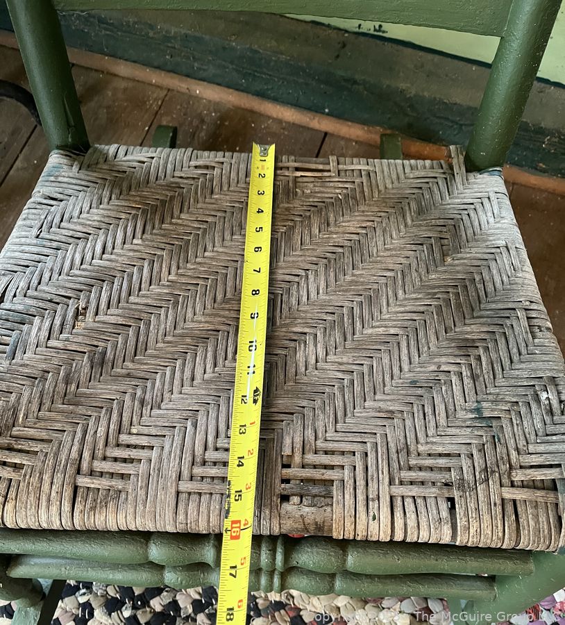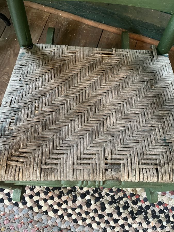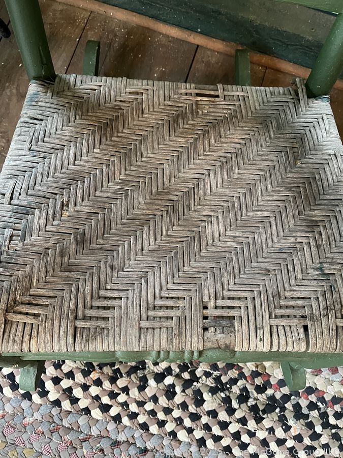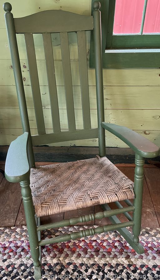 Lot #0405RM: Slat Back Green Painted Porch Rocker