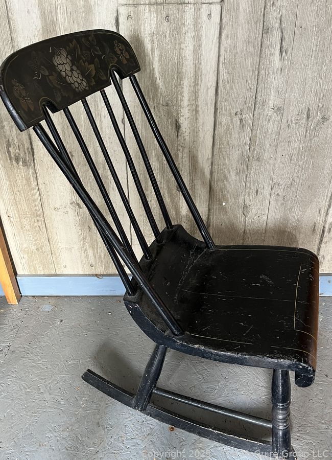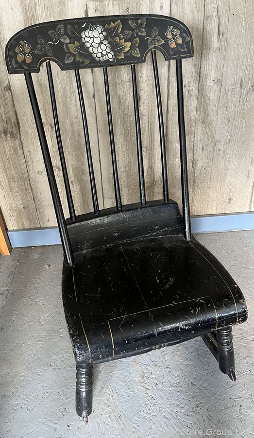 Lot #0353RM: Stencil Back Ebonized Rocking Chair