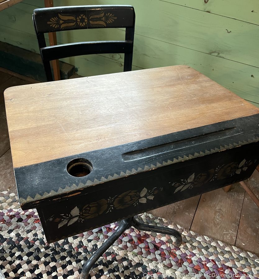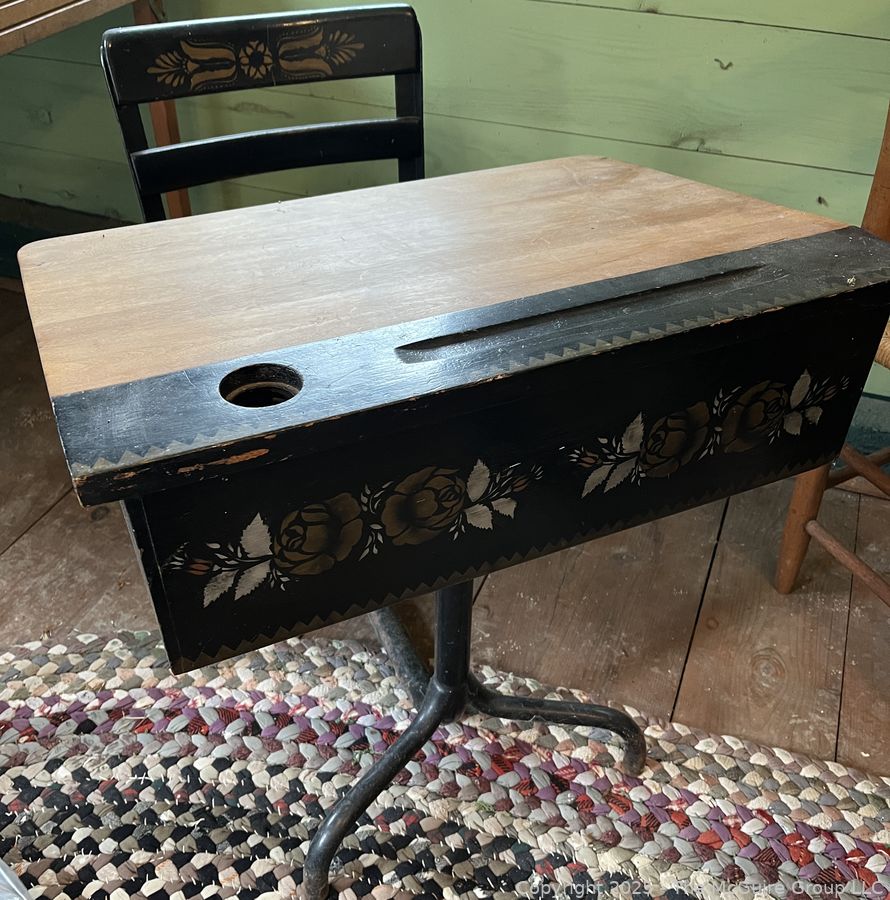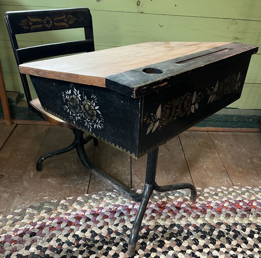 Lot #0419RM: Stenciled School Desk and Attached Chair