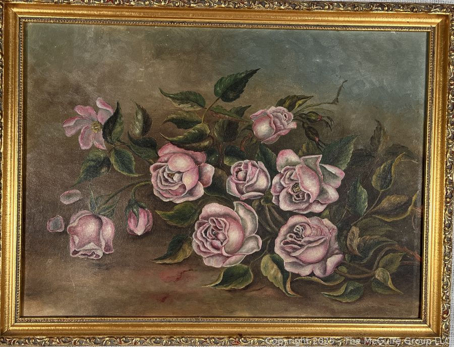 Lot #0642RMA: Top Giltwood Framed Oil on Canvas of Floral Still Life by Sarah McGuire Clark circa 1885