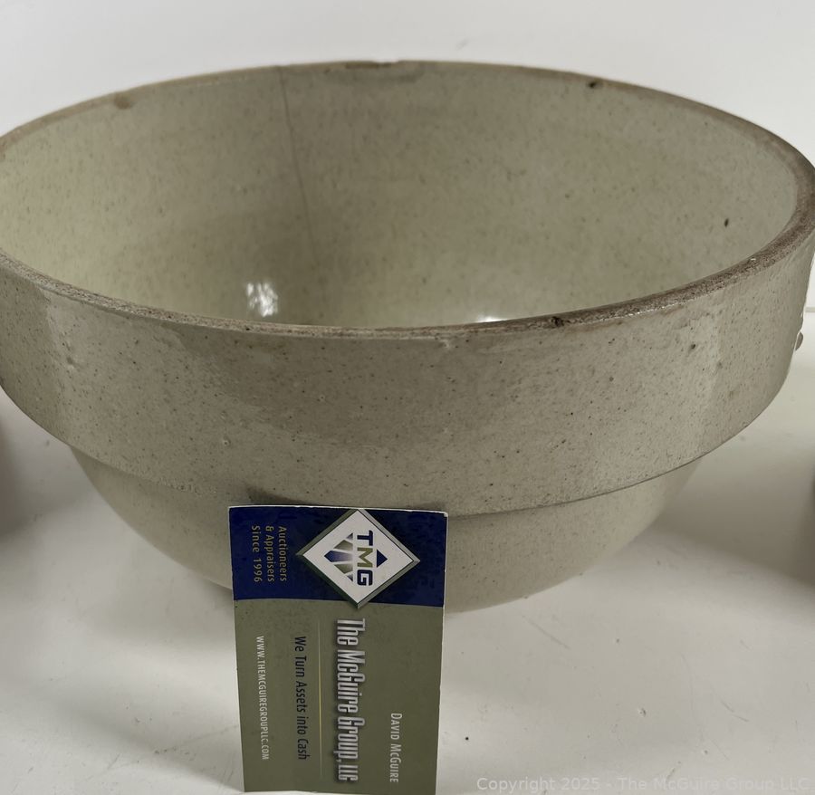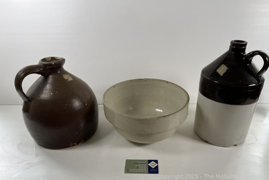 Lot #0327RM: Two Stoneware Jugs and Large Mixing Bowl