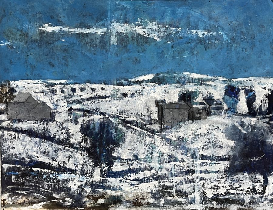 Lot #0660RM: Unframed Oil on Artists Board of McGuire/Coulter Farm Painted by Jennie Mae McGuire. Measures 20 x 28"