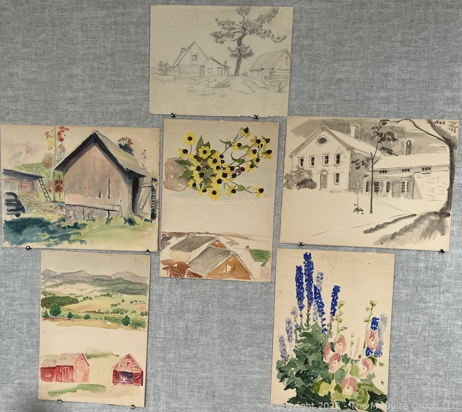 Lot #0711RM: Unframed Watercolor Sketch Book Pages by Artist Jennie Mae McGuire