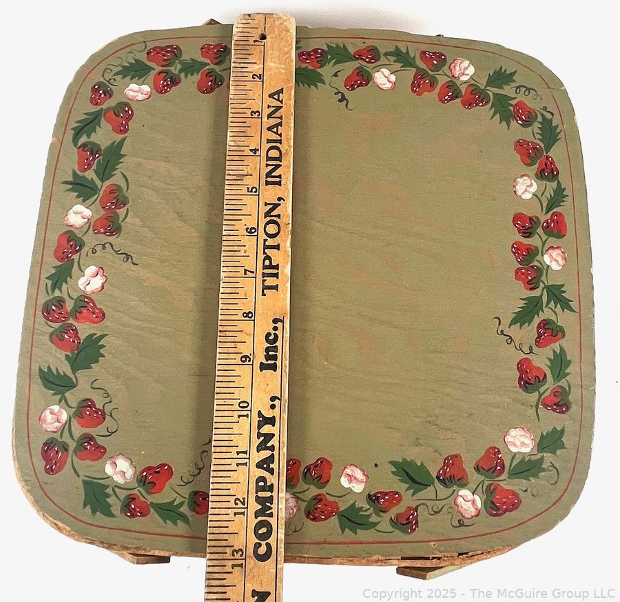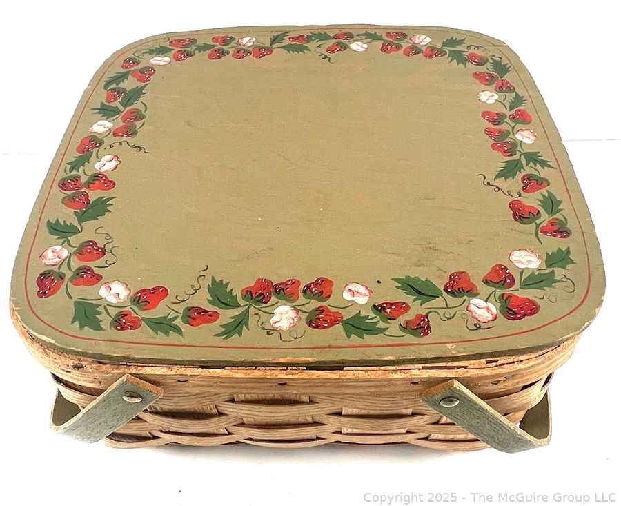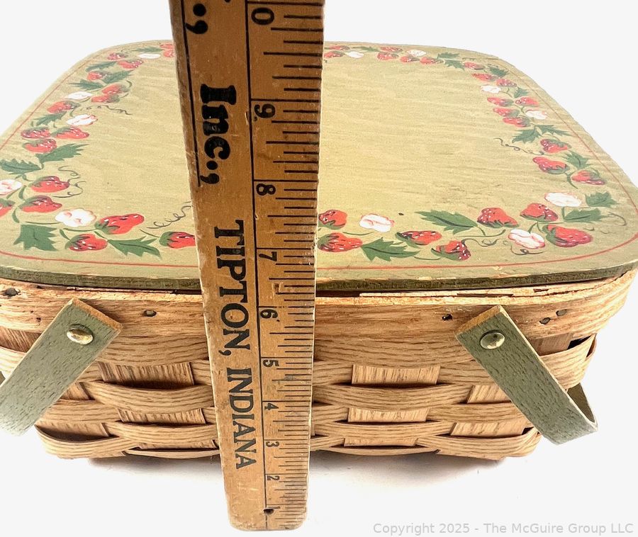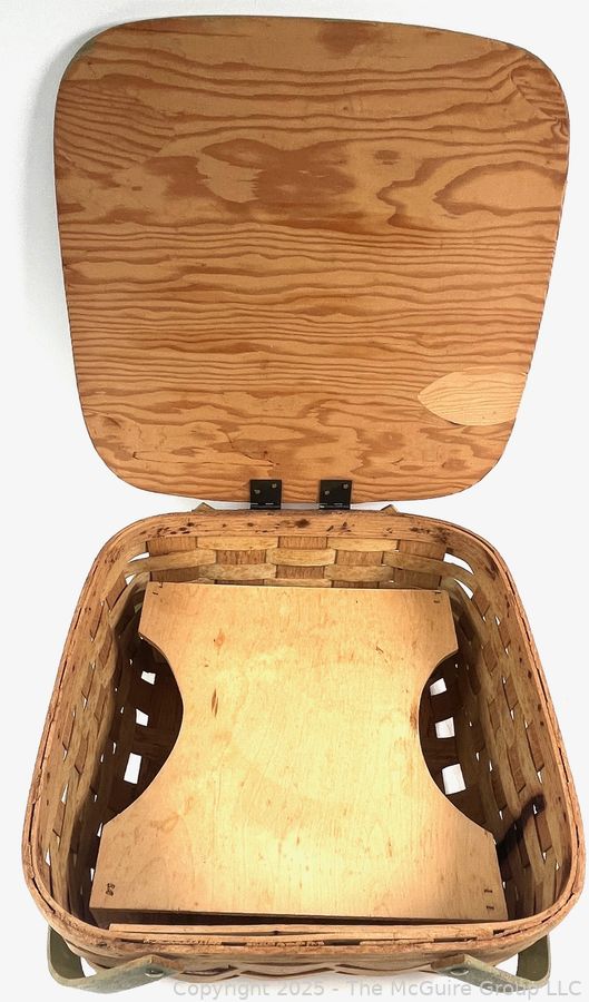 Lot #0897RM: Wood Double Handle Picnic Basket With Wood Pie Trivet Riser