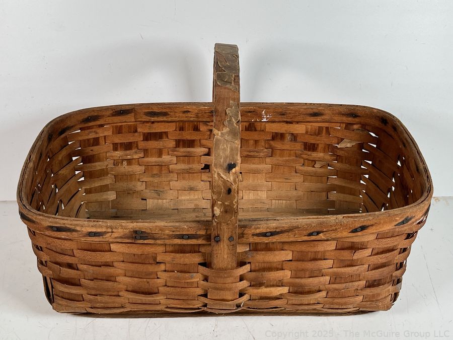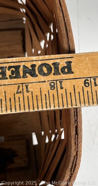 Lot #1184RM: Wood Splint Gathering Basket w/ Handle. Measures 18" Long