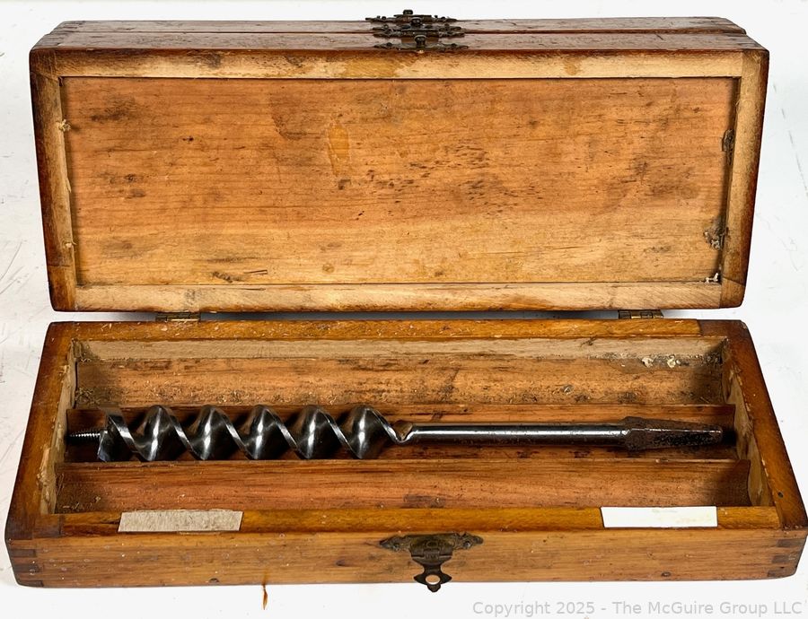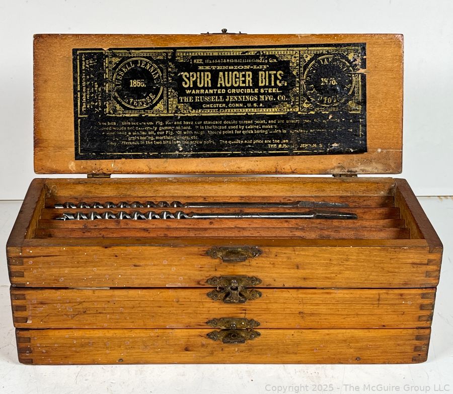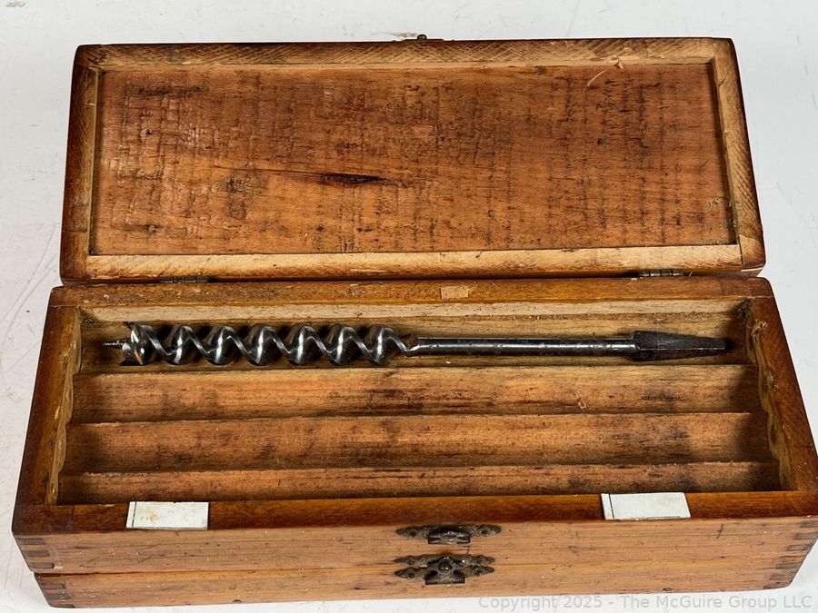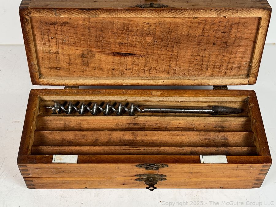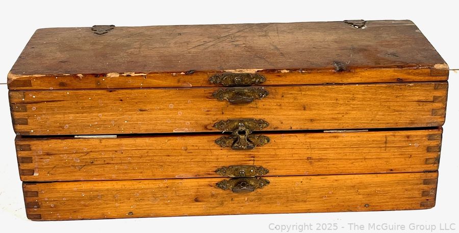Lot #1091RM: Wooden 3 Drawer Chest w/ Spur Augur Bits Measures 3 x 3 10"