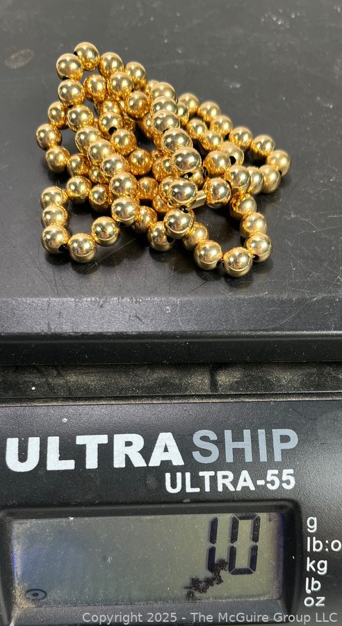 Lot #0012SS: 14kt Yellow Gold Hollow Bead Necklace on Chain. 10 grams