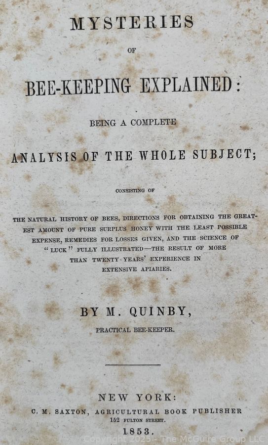 Lot #1021RM: 1853 Mysteries of Beekeeping Explained: A Guide... by Quimby, Moses HB