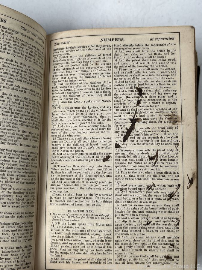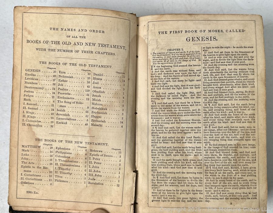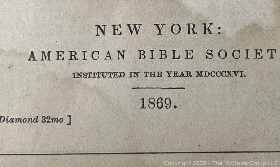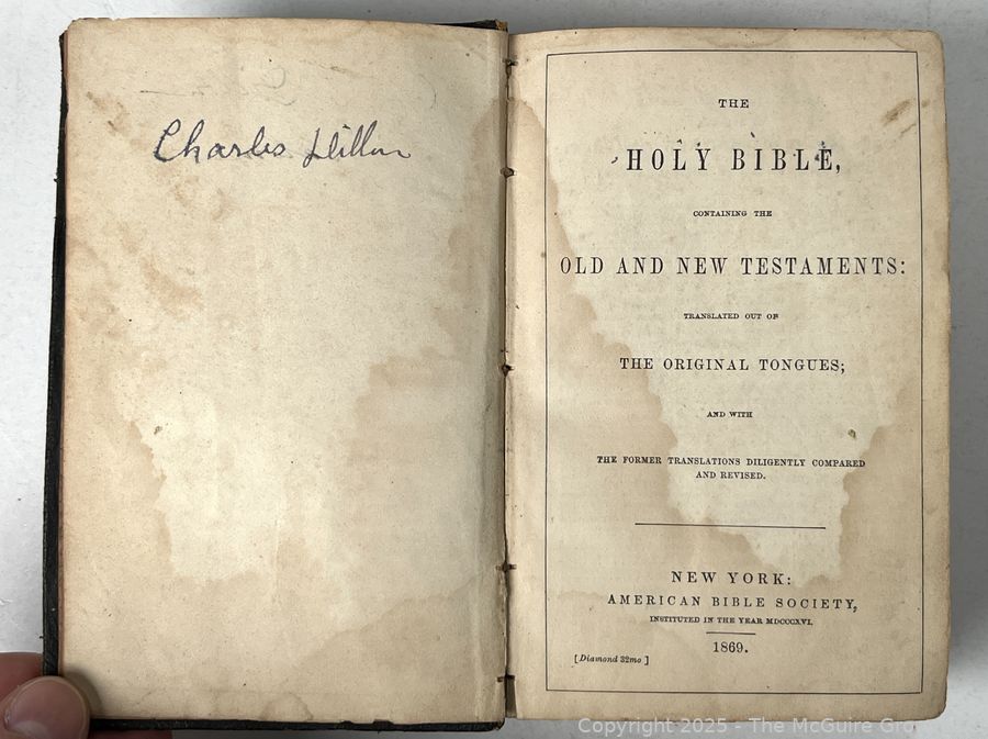 Lot #0023RM: 1869 Leather Bound American Bible Society Holy Bible Old & New Testaments