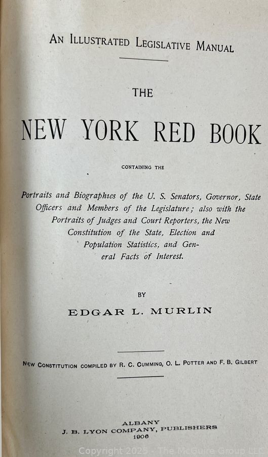 Lot #1049RM: 1906 The New York Red Book: An Illustrated Legislative Manual State Government