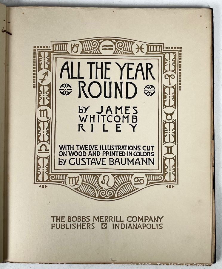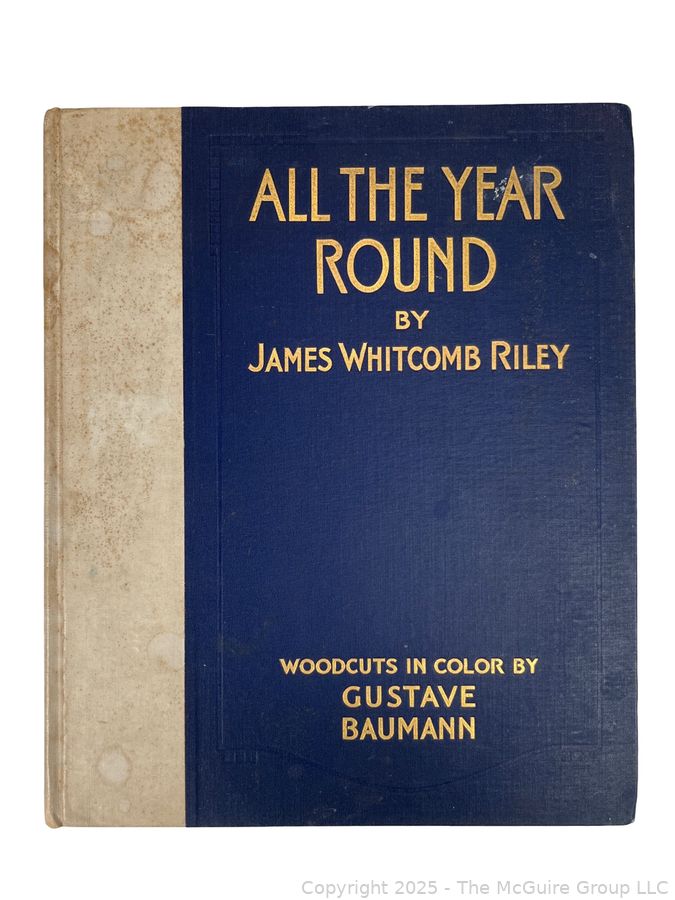 Lot #0092RM: 1912 All The Year Round by James Whitcomb Riley, Vintage Book Woodcuts by Gustave Baumann. Published by The Bobbs Merrill Co. Indianapolis